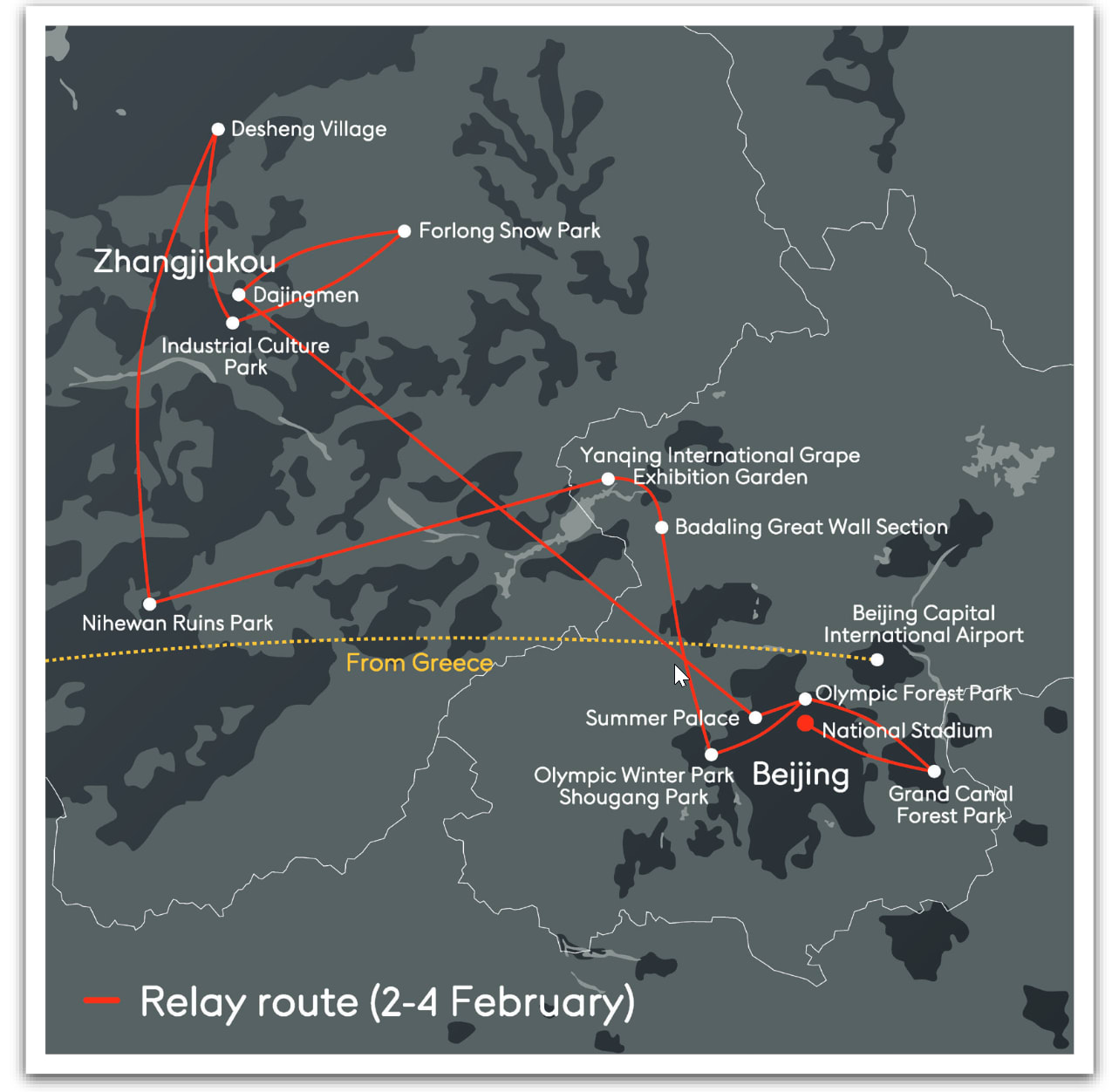 Start date: 18 October 2021, Olympia (Greece) – End date: 4 February 2022, National Stadium, Beijing (People’s Republic of China)