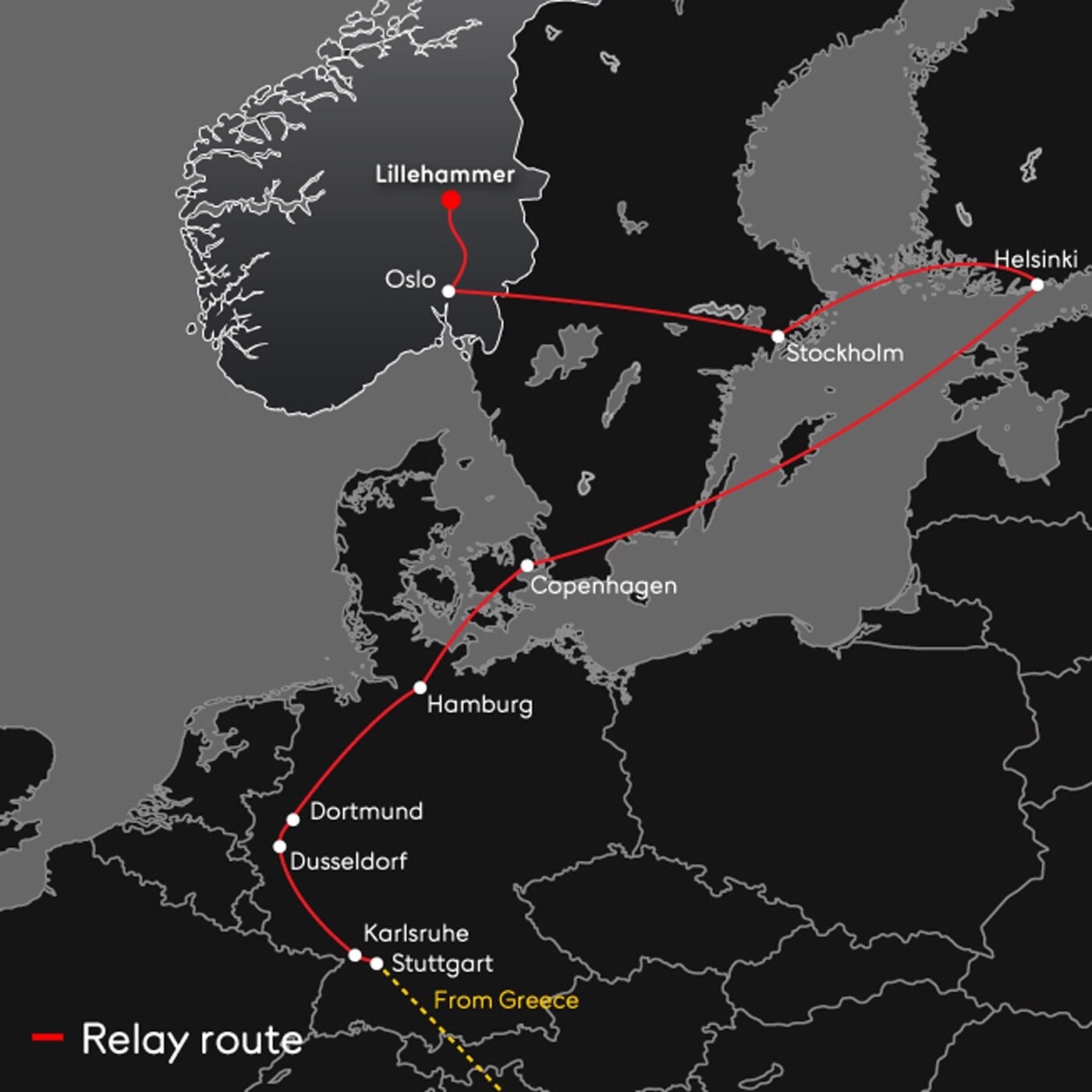 Start date: 16 January 1994, Olympia (Greece) – End date: 12 February 1994, Lysgårdsbakkene Ski Jumping Arena, Lillehammer (Norway)