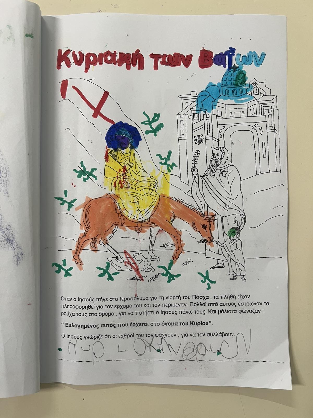 Μιλήσαμε για το Πάσχα,τα ήθη και τα έθιμα, μάθαμε και τραγουδήσαμε τα Κάλαντα του Λαζάρου. Φτιάξαμε ένα βιβλιαράκι με την ζωή και τα Πάθη Του Χριστού προσπαθώντας να γράψουμε τον τίτλο σε κάθε φύλλο εργασίας. Φτιάξαμε πολλές πασχαλινές κατασκευές, πασχαλινά καλάθια, λαμπάδες και βάψαμε αυγά με τον δικό μας πρωτότυπο τρόπο.