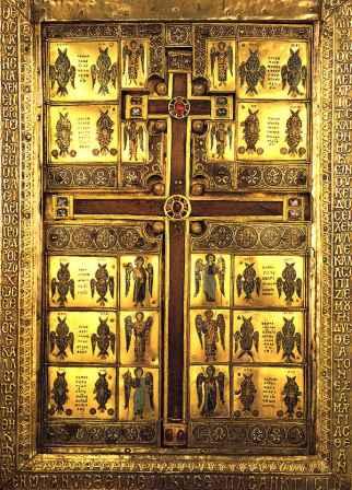 Τὸν Τίμιον Σταυρόν, τὸ σωτήριον ὅπλον, δεξώμεθα πιστοί, καθαρᾷ διανοίᾳ· προέρχεσθαι μέλλει γάρ, θείαν χάριν δωρούμενος, καὶ ἰώμενος, ψυχῶν ὁμοῦ καὶ σωμάτων, τὰ νοσήματα, δι’ ἐνεργείας ἀρρήτου, Χριστοῦ τοῦ Θεοῦ ἡμῶν.
