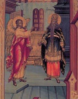 Ό Ζαχαρίας βρίσκεται ακόμα μέσα στο ναό. Μπροστά στο θυσιαστήριο. Αλλά και μπροστά στο υπερφυσικό ον, πού ακόμη δεν έφυγε. Βρίσκεται μπροστά στον Αρχάγγελο του Θεού. Ο Αρχάγγελος του είπε ορισμένα πράγματα…