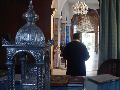 Όλα εδώ είναι συγκινητικά! Κατά συγκυρίαν, απόψε στον Εσπερινό δεν υπήρχε Έλληνας, πλην του λειτουργού, ο οποίος δεν φημίζεται για την γλωσσομάθειά του. Το εκκλησίασμα περί τα είκοσι άτομα όλων των ηλικιών. Στη λιτή προσκύνησαν με ευλάβεια την εικόνα των Τριών Ιεραρχών. Ακολούθησε το Μυστήριο της Εξομολόγησης για τους περισσότερους. Μα κι εκείνοι δεν μιλούν ελληνικά, αλλά την γλώσσα τους: πορτουγέζικα ή ρώσικα. Κύριος οίδε πώς έγινε πλήρης εξομολόγηση!!! Μπορεί απλώς να αναφερθεί ότι μια Ρωσίδα είχε γράψει πέντε λέξεις σ’ ένα κομμάτι χαρτί, στα ελληνικά, ώστε να δει ο λειτουργός τα πταίσματά της!!! “Μέγας ει Κύριε”!!!