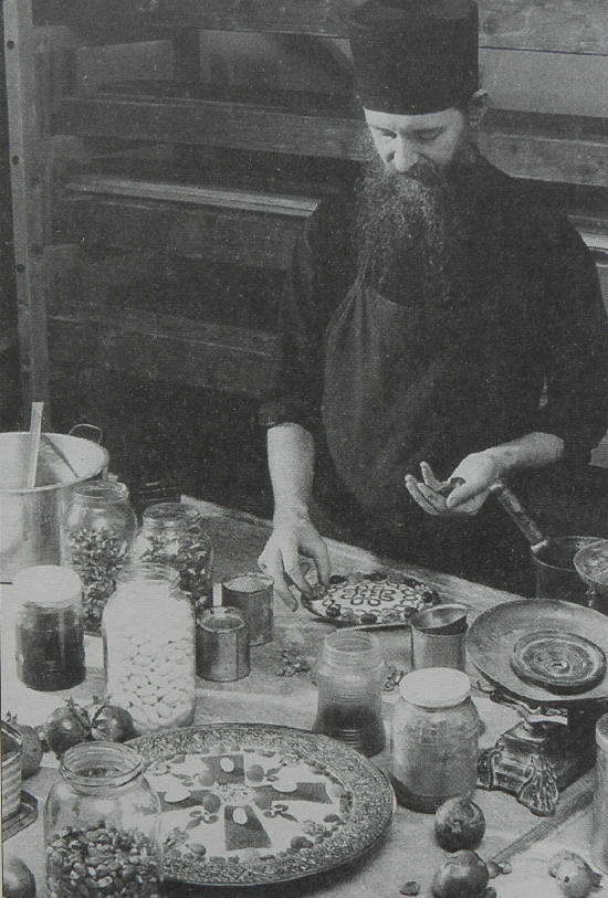 Το συνηθισμένο κόλλυβο είναι το καθημερινό γλύκισμα των μοναχών στα κοινόβια. Οι Ρώσοι συνηθίζουν στο Άγιον Όρος να κάνουν το κόλλυβο όχι με σιτάρι, αλλά με ρύζι, όπως στη Ρωσία. Ο Σμυρνάκης σημειώνει ότι αυτό γίνεται τόσο στη Μονή Αγίου Παντελεήμονος όσο και στις ρωσικές σκήτες και κελλιά.