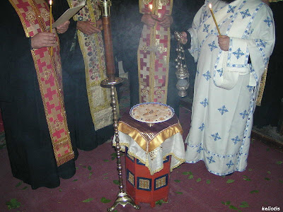 Στο κόλλυβο της πανήγυρης προσθέτει τριμμένο καρύδι, μοσχοκάρφια κοπανισμένα, κίμινο. Αντί καρυδιού σε μερικά μοναστήρια βάζουν καβουρδισμένα φουντούκια τριμμένα (τους αφαιρούνται οι φλούδες) κι αντί για μοσχοκάρφια κανέλλα.