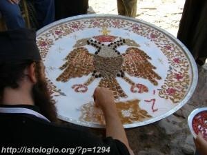 Οι Αγιογραφίες αυτές με χρωματιστή ζάχαρη είναι έργα τέχνης, που δυστυχώς καταστρέφονται, αφού τα κόλλυβα μοιράζονται και τρώγονται.
