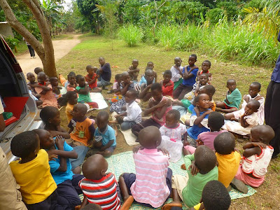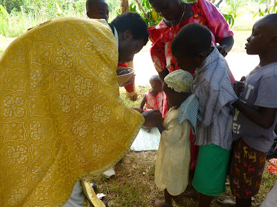 Το Σάββατο 13 Ιουλίου βαπτίσαμε ανάμεσα στις μπανανιές και τα καφεόδεντρα 89 ανθρώπους ,άνδρες ,γυναίκες και πολλά παιδιά!!! Την επόμενη μέρα λειτουργήσαμε στο χωριό και κοινώνησαν όλοι οι νεοφώτιστοι. Τους μάθαμε πως θα κοινωνούν ,πως θα κάνουν το σταυρό τους ,πως θα παίρνουν αντίδωρο. Ήταν συγκλονιστικό να βλέπεις ανθρώπους να τα ακούν πρώτη φορά και να τα πραγματοποιούν με μεγάλο σεβασμό και ευλάβεια. Και τις επόμενες Κυριακές λειτουργήσαμε στο χωριό και ξεκινήσαμε κατήχηση για τη Θεία Λειτουργία. Τα μικρά παιδιά συνέχισαν το κατηχητικό τους με τον Χριστοφόρο και βέβαια τις ζωγραφιές τους.