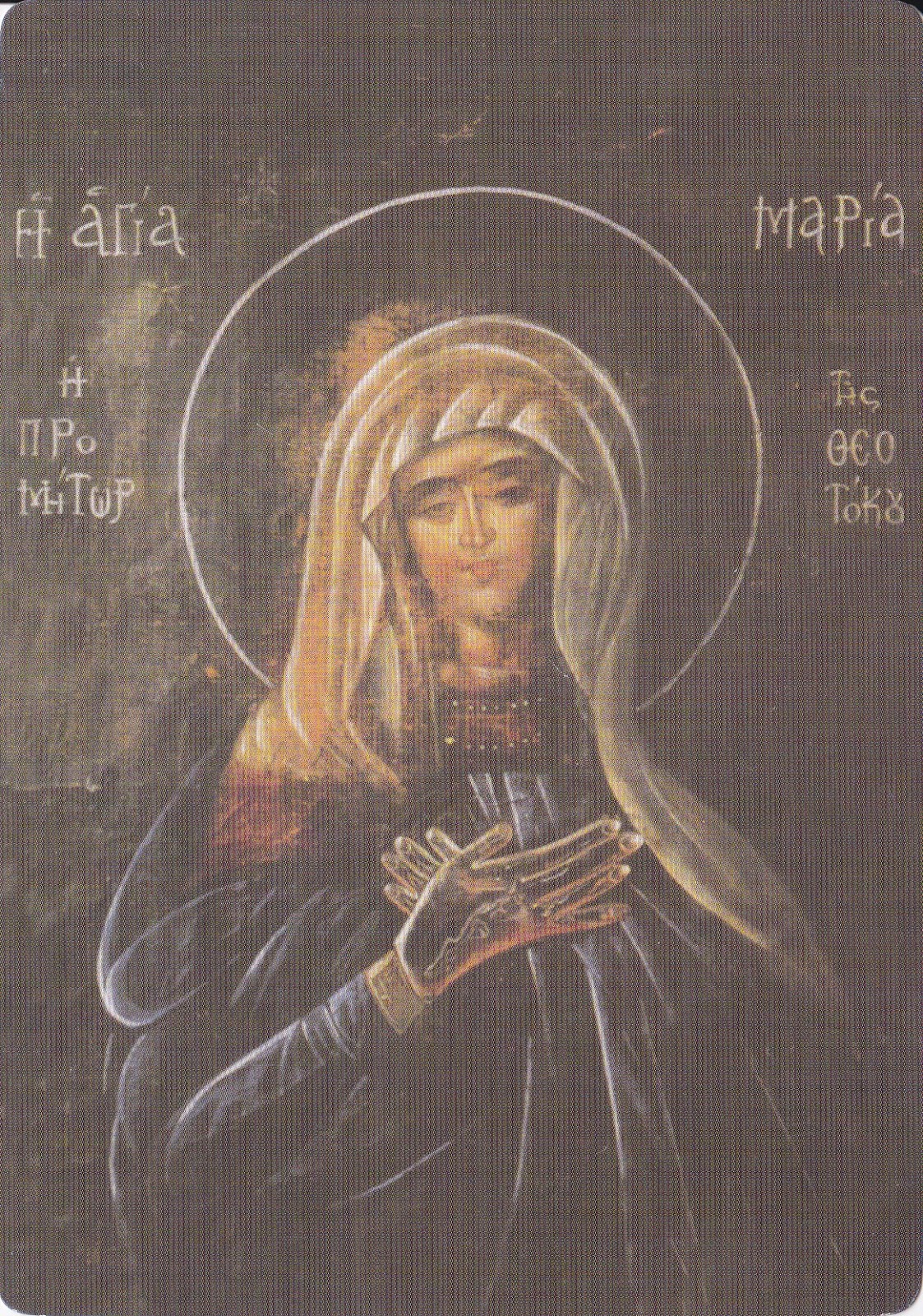 Εικ.: Η αγία Θεοπρομήτωρ Μαριάμ (γιαγιά της Παναγίας). Εικόνα από την ιστορική μονή Παναγίας Σεϊδανάγιας, Ιερουσαλήμ.Γονείς της Παναγίας είναι οι άγιοι Ιωακείμ και Άννα. Γονείς της αγίας Άννας ήταν ένα άλλο άγιο ζευγάρι, ο ιερέας Ματθάν και η Μαριάμ (παππούς και γιαγιά της Θεοτόκου). Ο δίκαιος Ματθάν (2) ήταν ιερέας του αληθινού Θεού και ανήκε (όπως όλοι εκείνοι οι άνθρωποι) στη θρησκεία της Παλαιάς Διαθήκης, τη θρησκεία που είχε τις 10 εντολές και τους προφήτες και περίμενε τον ερχομό του Χριστού.