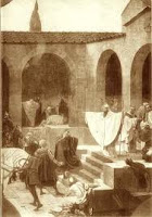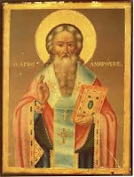 «Ο άγιος Αμβρόσιος αναπτύχθηκε στη μεγαλόδοξη πόλη Ρώμη, ήταν ένας από τη Σύγκλητο και τηρούσε πάντοτε την αλήθεια και στα λόγια και στα έργα. Κατά προσφυή τρόπο υπήρξε ένα είδος ζυγού και στάθμης του δικαίου, αποφασίζοντας σε όλες τις περιπτώσεις που του τύχαιναν όχι διφορούμενα αλλά σταθερά και ορθά. Γι’ αυτό και οι ευσεβείς βασιλείς Κωνσταντίνος και Κώνστας, υιοί του μεγάλου Κωνσταντίνου, του εμπιστεύθηκαν την ηγεμονία της Ιταλίας. Χωρίς ακόμη να έχει βαπτιστεί, ευρισκόμενος στην τάξη των κατηχουμένων, ζούσε την αρετή και την καθαρότητα του βίου όχι λιγότερο από εκείνους που ήδη ήταν μέλη της Εκκλησίας και μετείχαν στα Μυστήρια. Με απόφαση του βασιλιά Ουαλεντιανού ο άγιος Αμβρόσιος προχειρίζεται αρχιερέας της Εκκλησίας των Μεδιολάνων, γιατί εκείνον τον καιρό απέθανε ο προηγούμενος επίσκοπος, οπότε μαζί με το βάπτισμα που έλαβε, διήλθε κατά την τάξη της Εκκλησίας όλους τους βαθμούς της ιερωσύνης, φτάνοντας στον τελευταίο. Έκτοτε δίδασκε την ορθόδοξη πίστη και ζωή καλώς και ορθώς, κρατώντας την Εκκλησία μακριά από κάθε αίρεση και υπερασπιζόμενος αυτούς που αγωνίζονταν κατά των αιρέσεων του Αρείου και του Σαβελλίου και του Ευνομίου. Συνέταξε διάφορα βιβλία υπέρ της ευσεβούς πίστεως, ενώ όταν ο βασιλιάς Θεοδόσιος ήλθε στην πόλη των Μεδιολάνων, μετά από διαταγή του να φονευτούν πολλοί στη Θεσσαλονίκη, τον εμπόδισε να εισέλθει στην Εκκλησία, θυμίζοντάς του αυτά που είχε αποτολμήσει να κάνει και διδάσκοντάς τον πόση διαφορά υπάρχει μεταξύ ιερωμένου, λαϊκού και βασιλιά. Κι αφού τον νουθέτησε να μη προσέρχεται στα θεία με αυθάδεια και αναίδεια, τελείωσε τη ζωή του με καλά γηρατειά».