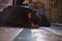 ᾽Αλλά κι ἐκεῖνος σάν νά μέ εἶδε. Εἶδε τήν καλογερική μου ἀμφίεση, κατάλαβε ὅτι εἶμαι προσκυνητής καί στράφηκε ὁλόκληρος πρός τό δικό μου μέρος, ἐρχόμενος σέ μένα.
