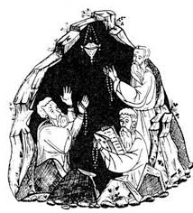 Κάποιο κούτσουρο στήν φωτιά σπίθισε ἀπό ἕνα ξαφνικό γύρισμα τοῦ ἀέρα κι ἔκανε τούς προσκυνητές καλόγερους νά στραφοῦν πρός τό μέρος της. Λίγο σάν νά ρίγησαν ἀπό τό κρύο πού εἶχε πέσει, καθώς τό βράδυ εἶχε προχωρήσει. ᾽Ανακάθισαν καλύτερα στίς θέσεις τους καί τά μάτια τους καί ὁ νοῦς τους στηλώθηκαν καί πάλι στόν ἀνολοκλήρωτο λόγο τοῦ Γέροντα.