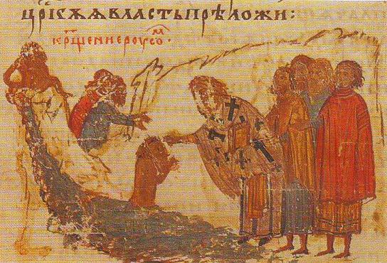 | Ο Βούλγαρος ηγεμών Βόγορις βαπτίζεται και παίρνει το χριστιανικό όνομα Μιχαήλ, το όνομα δηλαδή του αναδόχου του βυζαντινού αυτοκράτορα Μιχαήλ Γ’ |