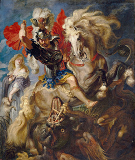 Ο Ολλανδός ζωγράφος Ρούμπενς (1577 – 1640), χρησιμοποίησε ως μοντέλο για τις Παναγίες του την ερωμένη του και κατόπιν δεύτερη σύζυγό τουΕλένη Fourment, την οποία βρίσκουμε να εικονίζεται στο εν Haus der Kunst του Μονάχου μεγάλο πίνακα τής “Γέννησης του Χριστού”, στην “αγία οικογένεια” στο ανάκτορο Pitti, κ.ά. Χαρακτηριστική μάλιστα είναι η εικόνα του “αγίου Γεωργίου”, η οποία βρίσκεται στο παρεκκλήσι τού τάφου τού ζωγράφου, στην οποία ο Ρούμπενς έχει παραστήσει ιερά πρόσωπα, τα οποία βασίζονται στις μορφές των μελών τής οικογένειάς του, ο δε εικονιζόμενος άγιος Γεώργιος είναι αυτός ο ίδιος!