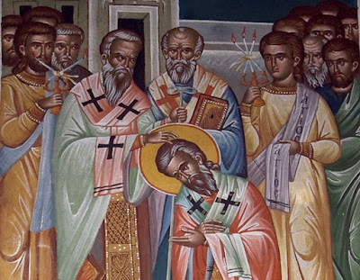 Στα μέσα τού Β΄αιώνα μ.Χ., όταν άρχισαν να υποχωρούν οι ενθουσιαστικές τάσεις στις χριστιανικές κοινότητες που εκφράζονταν κατά κύριο λόγο από διάφορους χαρισματούχους (προφήτες, γλωσσολαλούντες κ.λ.π.), η εσωτερική οργάνωση τής εκκλησίας εξελίσσεται και λαμβάνει διαφορετική μορφή. Από τις ιστορικές και εκκλησιαστικές μαρτυρίες που έχουμε προκύπτει, ότι οι τρεις βαθμοί τής ιεροσύνης – επίσκοπος, πρεσβύτερος και διάκονος – σταθεροποιούνται πλέον. Προϊόντος τού χρόνου εξαφανίζονται παντελώς τα αξιώματα που συνδυάζονταν με τις ενθουσιαστικές τάσεις και αναπτύσσονται στην εκκλησία νέες υπηρεσίες τις οποίες αναλαμβάνουν ορισμένοι πιστοί…
