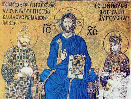 – η παρέμβαση του Κράτους στα πράγματα της Εκκλησίας, που συχνά οδηγούσε σε θρησκευτικά πογκρόμ (π.χ. Εικονομαχία), και η εμπλοκή της Εκκλησίας στην εξωτερική πολιτική (Φώτιος, Κηρουλάριος…)