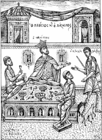γ) Στο σημερινό ευαγγελικό ανάγνωσμα (Λουκ. 16, 19-31) σε μία από τις παραβολές του Χριστού περιγράφονται δύο άνθρωποι, οι οποίοι, ενώ βρίσκονται πολύ κοντά, ζουν με διαφορετικό τρόπο. Ο ένας “ήταν πλούσιος, φορούσε πολυτελή ρούχα και το τραπέζι του ήταν κάθε μέρα λαμπρό. Κάποιος φτωχός όμως, που τον έλεγαν Λάζαρο, ήταν πεσμένος στο κατώφλι του πλουσίου γεμάτος πληγές”. Στην άλλη ζωή οι εικόνες διαφέρουν: Ο πλούσιος βασανίζεται στον Άδη της απομόνωσης και της απαράκλητης ζωής, ενώ ο πτωχός Λάζαρος παραμυθείται σπλαχνικά στην αγκαλιά του Αβραάμ.