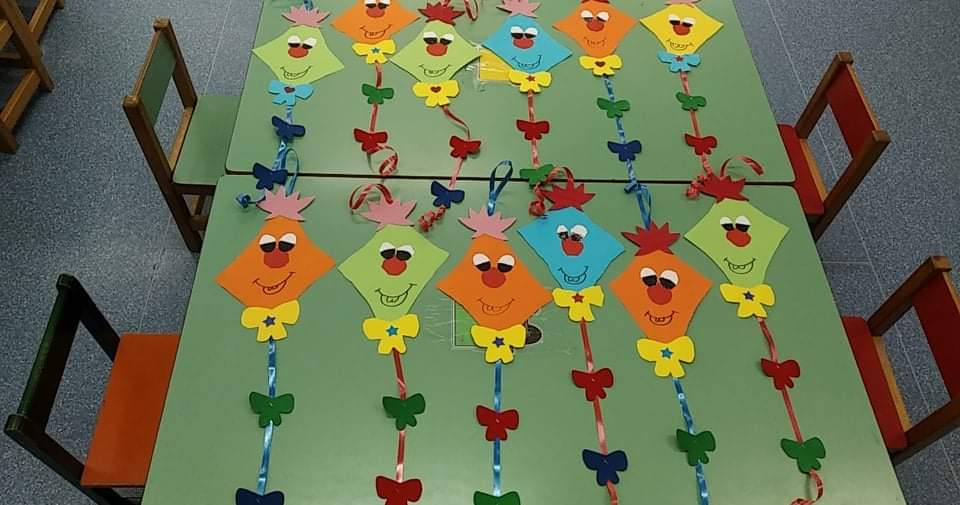 Στο νηπιαγωγείο μας φτιάξαμε με τα παιδιά τους δικούς μας χαρταετούς.