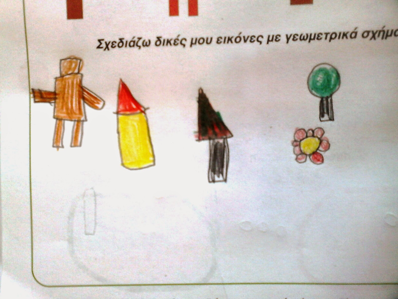 Στα σχήματα αφού ζωγραφίσω κάποιες εικόνες με σχήματα στον πίνακα (λουλούδι, σπίτι κ.α.) θα καλέσω και τα παιδιά να το προσπαθήσουν. Θα τα καταφέρουν περίφημα!