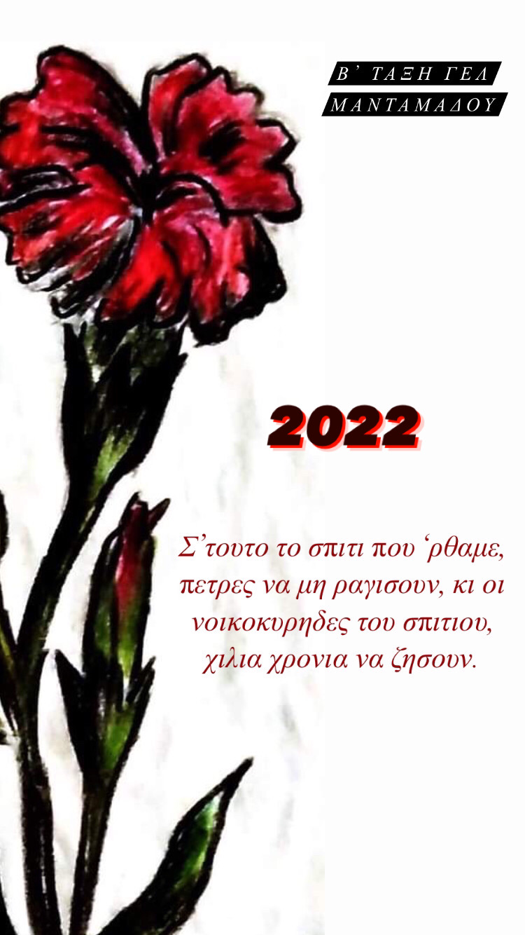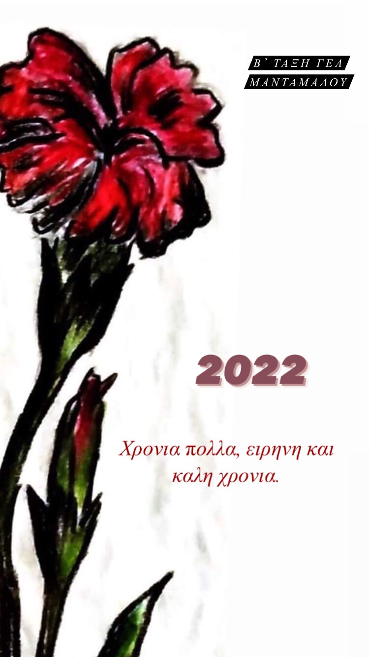 ΓενικάΕΥΧΕΣ 21 Δεκεμβρίου 202112 Φεβρουαρίου 2022 - από τον/την ΓΕΝΙΚΟ ΛΥΚΕΙΟ ΜΑΝΤΑΜΑΔΟΥ Φτιάχνουμε κάρτες και σας ευχόμαστε Καλές Γιορτές με υγεία και ευτυχία