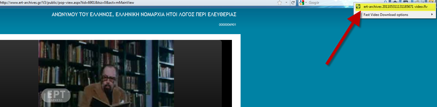 1. Με τη χρήση του Firefox, που μπορούμε να κατεβάσουμε την τελευταία του έκδοση από εδώ. Πρέπει να εγκαταστήσουμε το πρόσθετο Fast Video Download που θα το βρούμε εδώ. Η εγκατάστασή του γίνεται εύκολα, όπως και για τα άλλα πρόσθετα και απαιτείται επανεκκίνηση. Μετά την επανεκκίνηση πάνω δεξιά και κάτω δεξιά θα εμφανιστούν τα δύο εικονίδια του FDV.