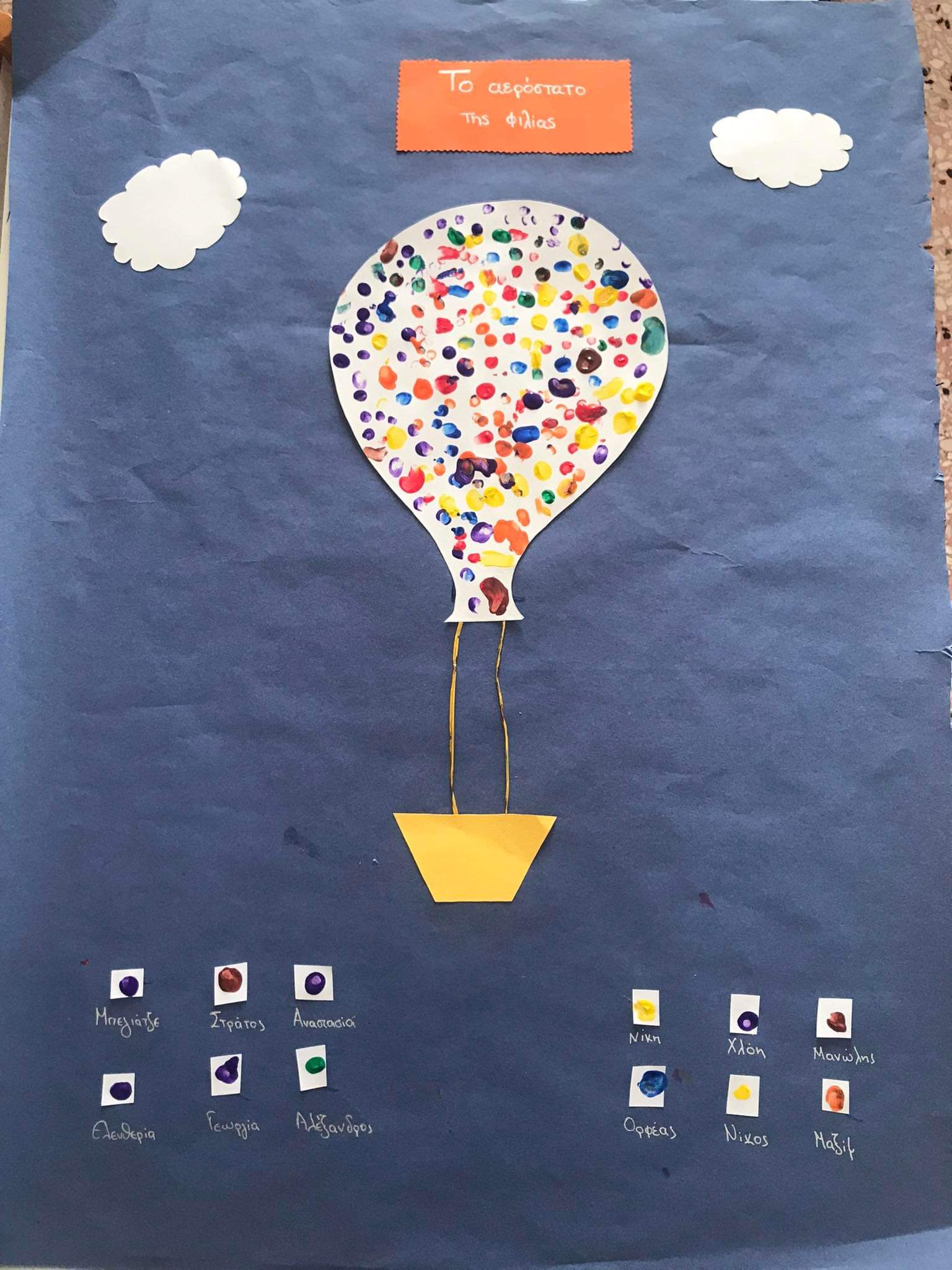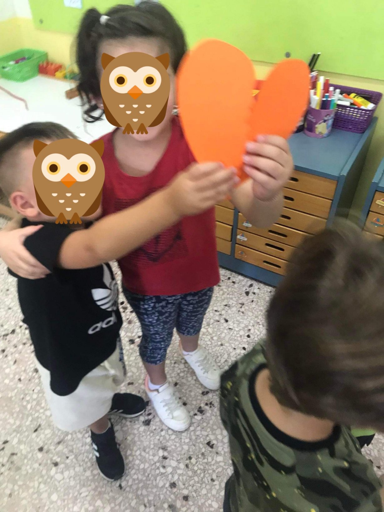 Με τους συμμαθητές μας περνάμε τη μισή μέρα, οπότε πρέπει να γνωριστούμε να γίνουμε φίλοι και να προσπαθούμε όλοι μαζί για το καλύτερο. Ένα υπέροχο παραμύθι, μας βοήθησε να κατανοήσουμε τη σπουδαιότητα της φιλίας. Κατοπιν παίξαμε παιχνίδια που τα παιδιά γίνονταν ζευγάρι με αυτόν που είχε το άλλο μισό της καρδιάς και φτιάξαμε το δέντρο και το αερόστατο της φιλίας και τα χεράκια της αγάπης!!!