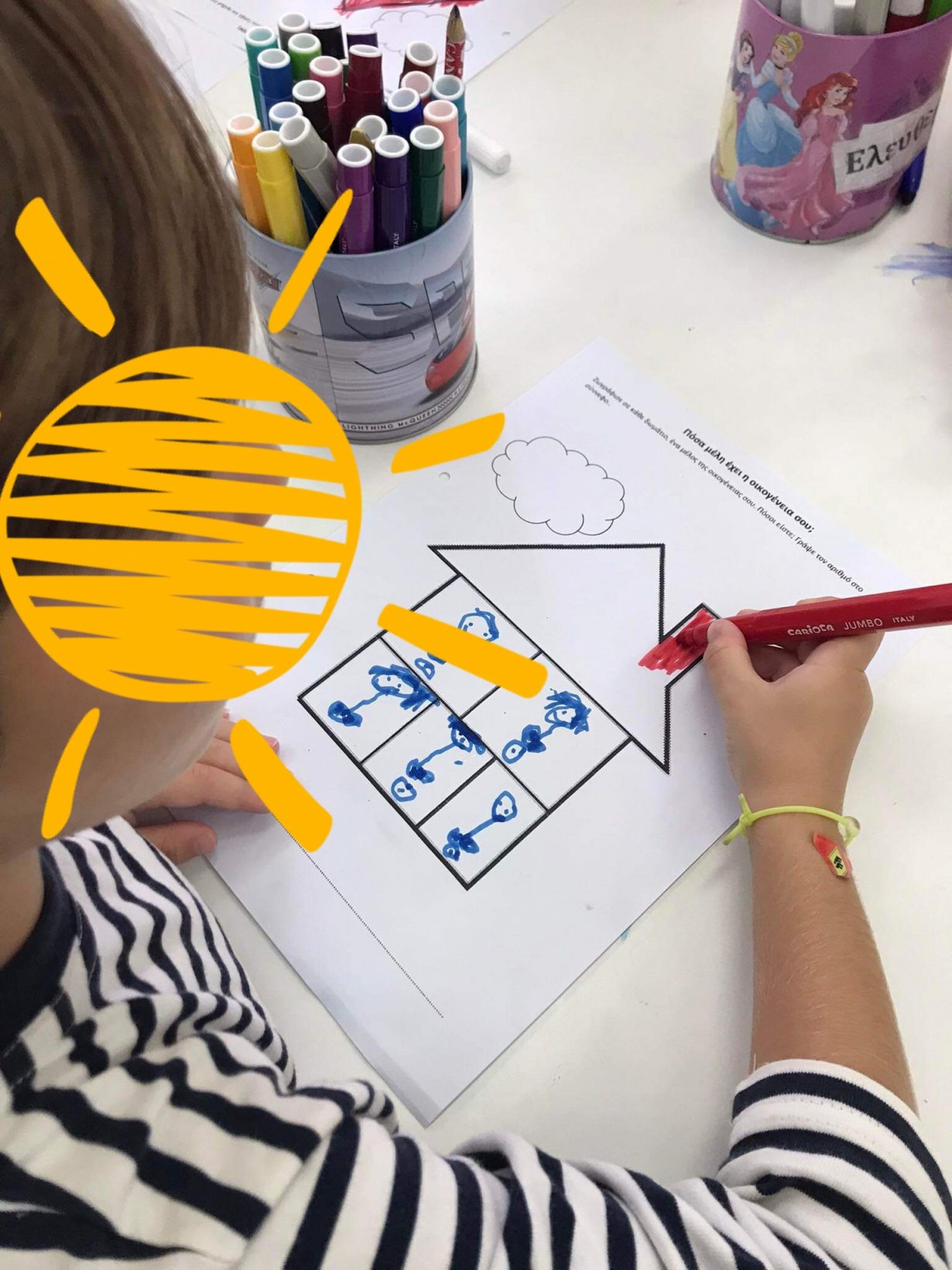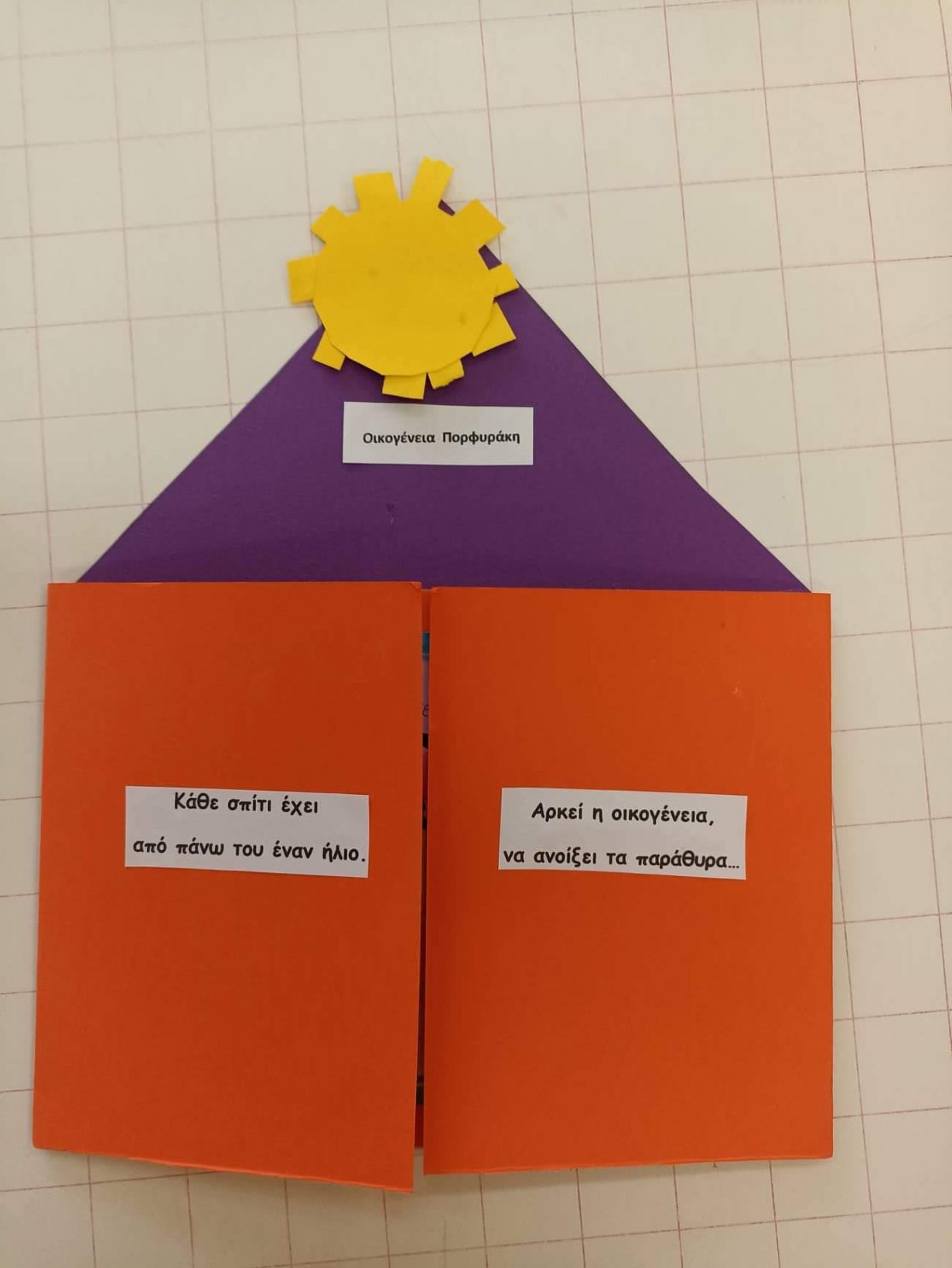 Και στο τέλος κλείσαμε την οικογένεια μας καλά σ ένα σπιτάκι, γιατί, κάθε σπίτι έχει από πάνω του έναν ήλιο, αρκεί η οικογένεια να ανοίξει τα παράθυρα!!!!