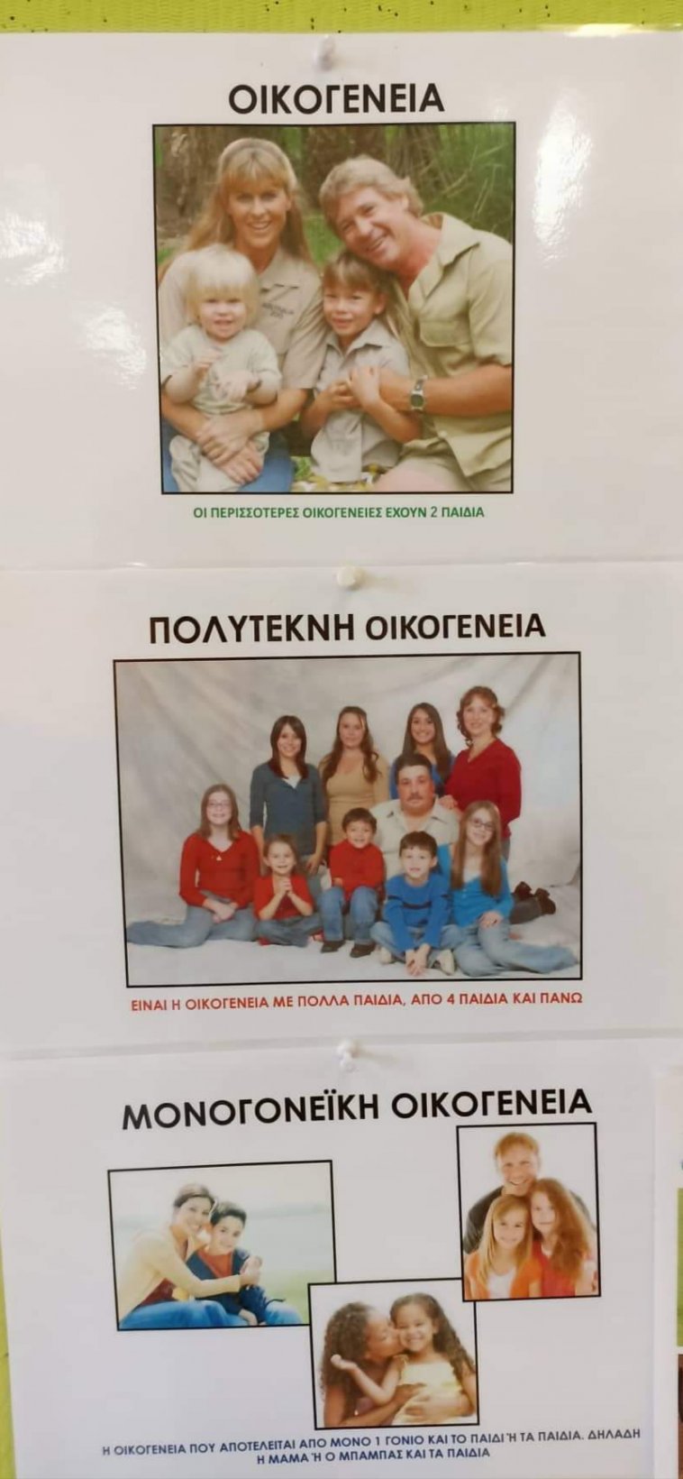 Ειμαστε μέλη όμως και μίας μοναδικής και ξεχωριστής οικογένειας. Κάθε μία είναι τοσο διαφορετική και όμορφη όπως κι ο εαυτός μας.Μιλησαμε για τα είδη της οικογένειας. Αναγνωρισαμε σε αυτά τη δική μας και την παρουσιάσαμε στους συμμαθητές μας.Επισης, με τη βοήθεια της οικογένειας Τριγώνου καταγράψαμε και τα μέλη κάθε οικογένειας.