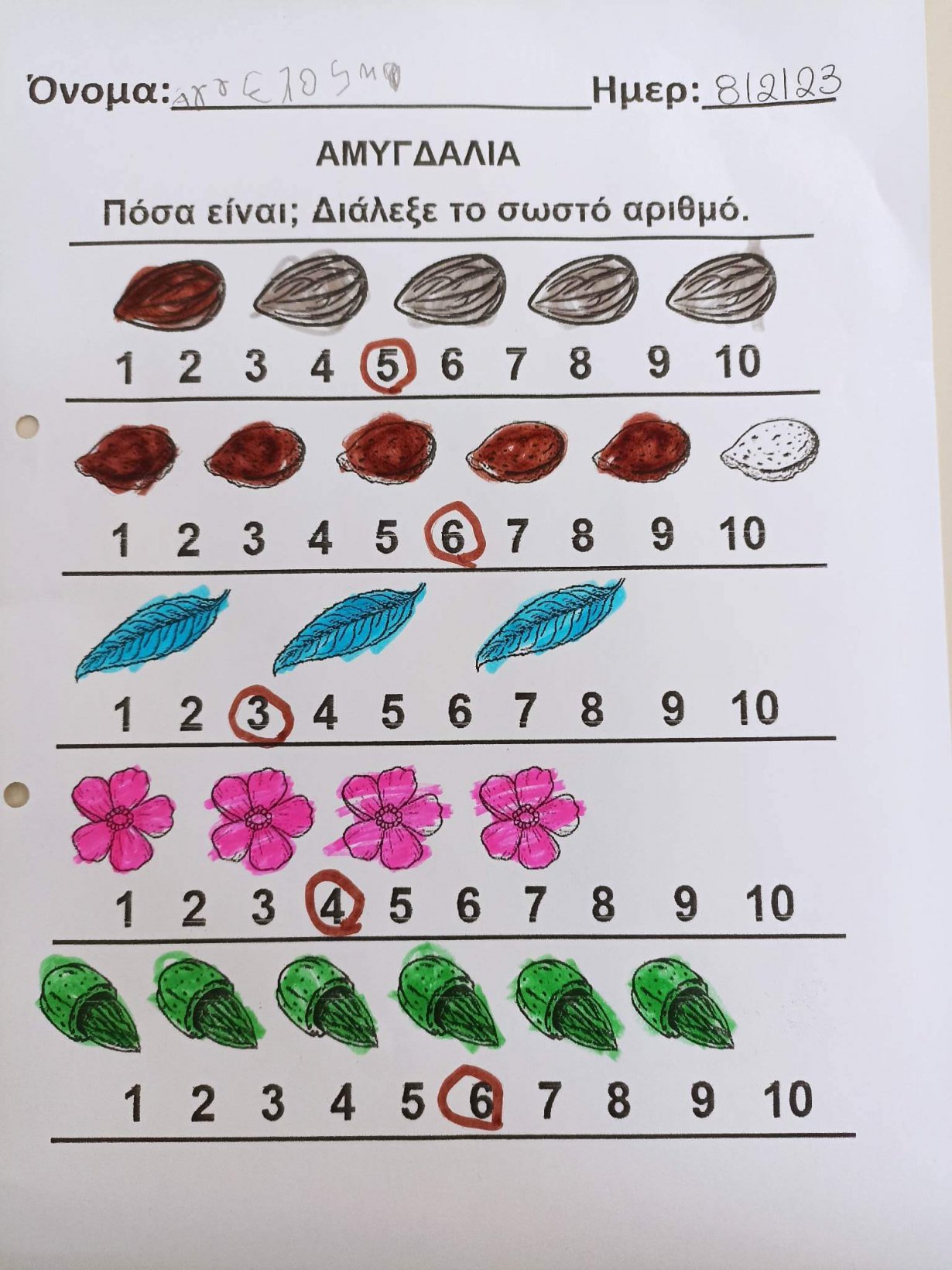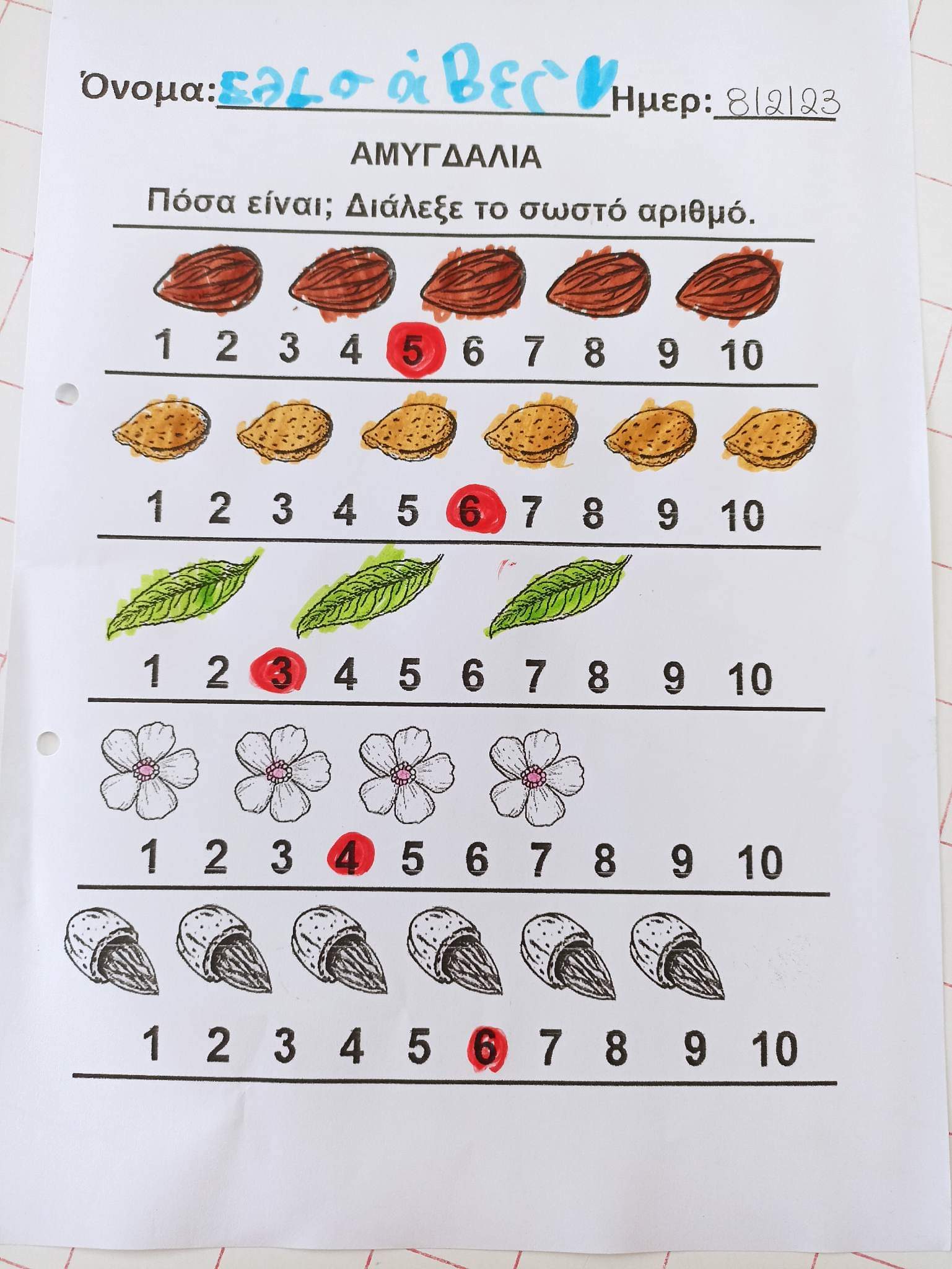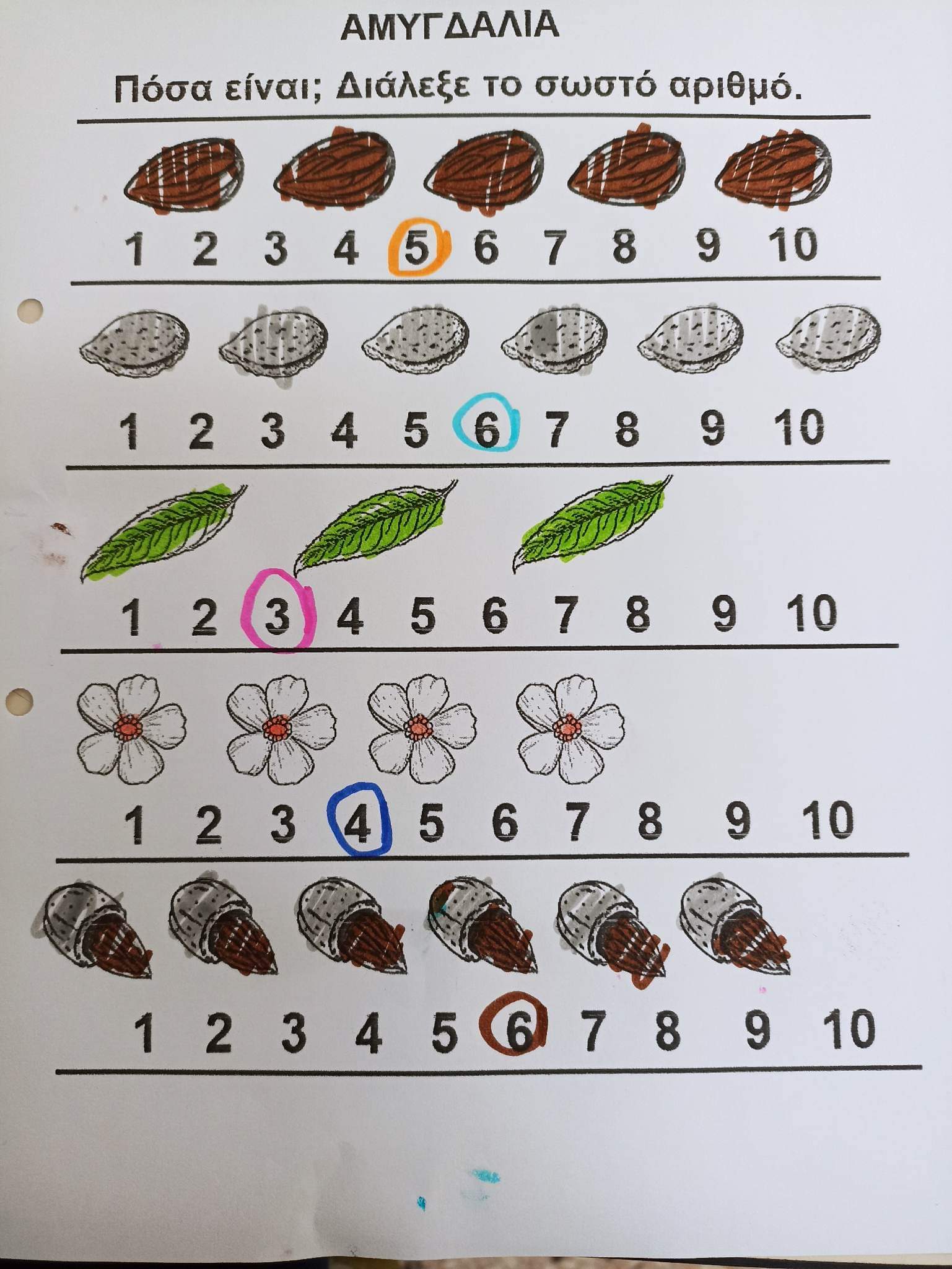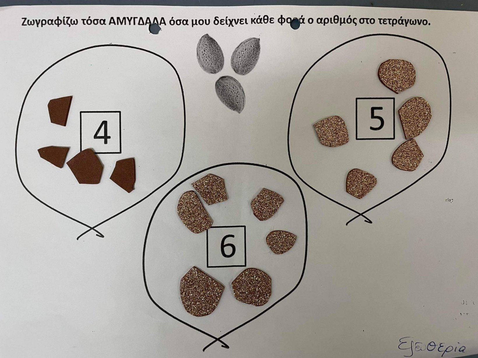 Γλώσσα και Μαθηματικα με την βοήθεια της Αμυγδαλιας και των ααμυγδάλων.