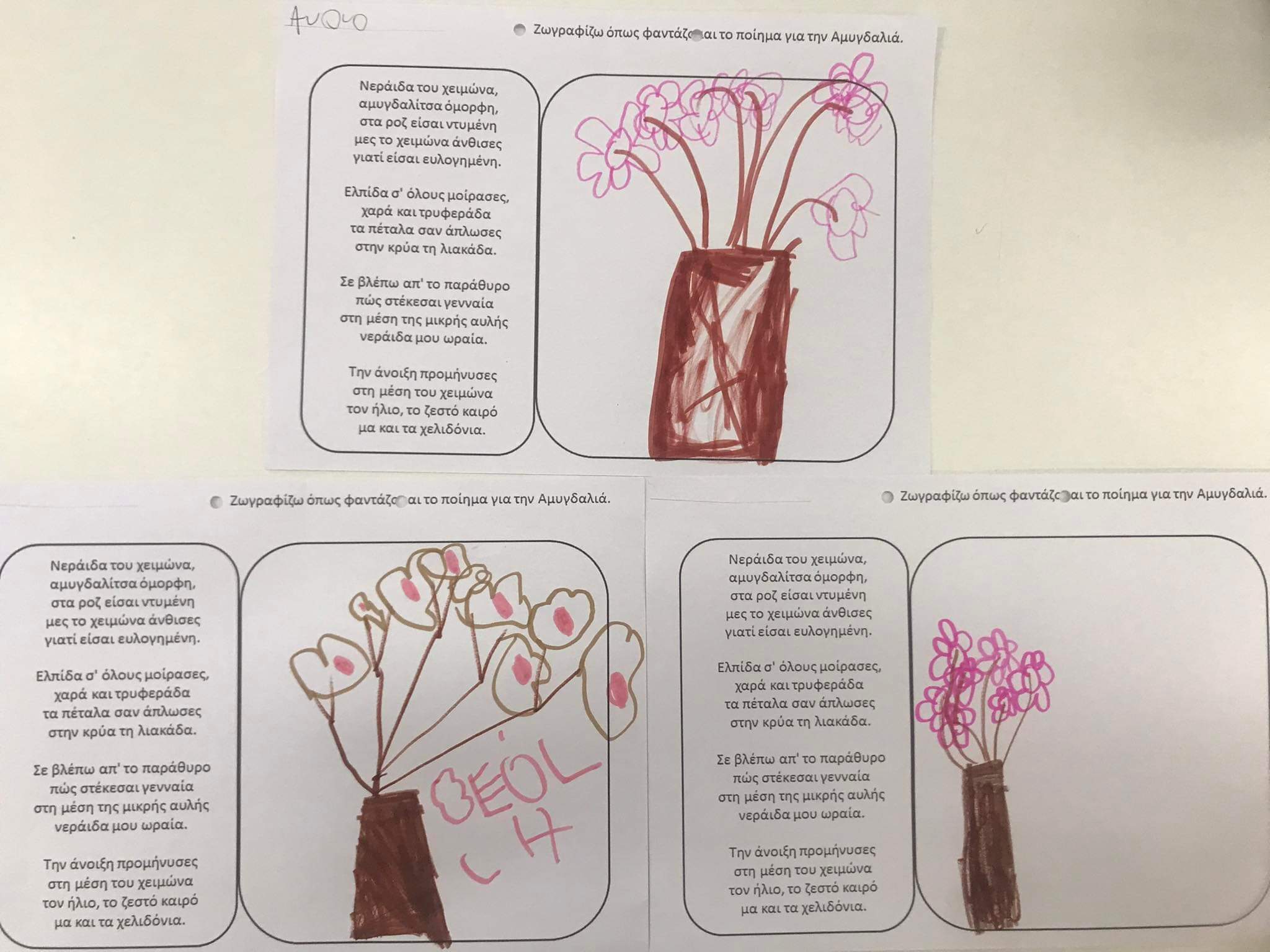Ακόμα ππερισσότερες εικαστικές δημιουργίες με έμπνευση πίνακες ζωγραφικής, ποιήματα για την αμυγδαλιά αλλά και αινίγματα.