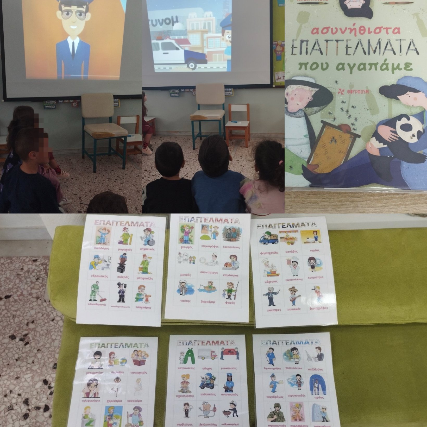Διαβάσαμε πολλά βιβλία, συζητήσαμε για τα διαφορετικά επαγγέλματα, τις ευθύνες και τη σημασία τους για την κοινωνία, ενώ τα παιδιά έδειξαν μεγάλο ενθουσιασμό για όσα ανακάλυψαν.