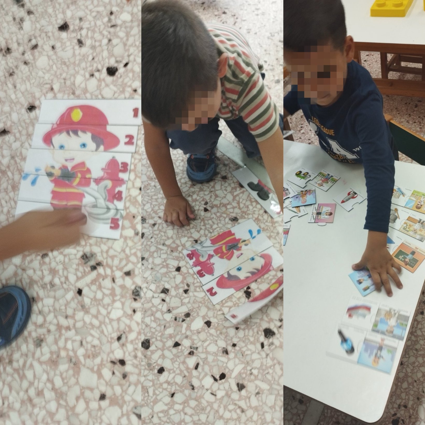 Στη συνέχεια ασχοληθήκαμε με το επάγγελμα του Πυροσβέστη, ανακαλύπτοντας πόσο σημαντική είναι η προσφορά του. Η δράση συνεχίστηκε μέσα από παιχνίδια παζλ, όπου τα παιδιά συνεργάστηκαν για να ολοκληρώσουν εικόνες σχετικές με τον εξοπλισμό των πυροσβεστών. Με αυτόν τον τρόπο εξάσκησαν τη λεπτή κινητικότητα, την παρατηρητικότητα και τη συνεργασία, μαθαίνοντας παράλληλα με χαρά.