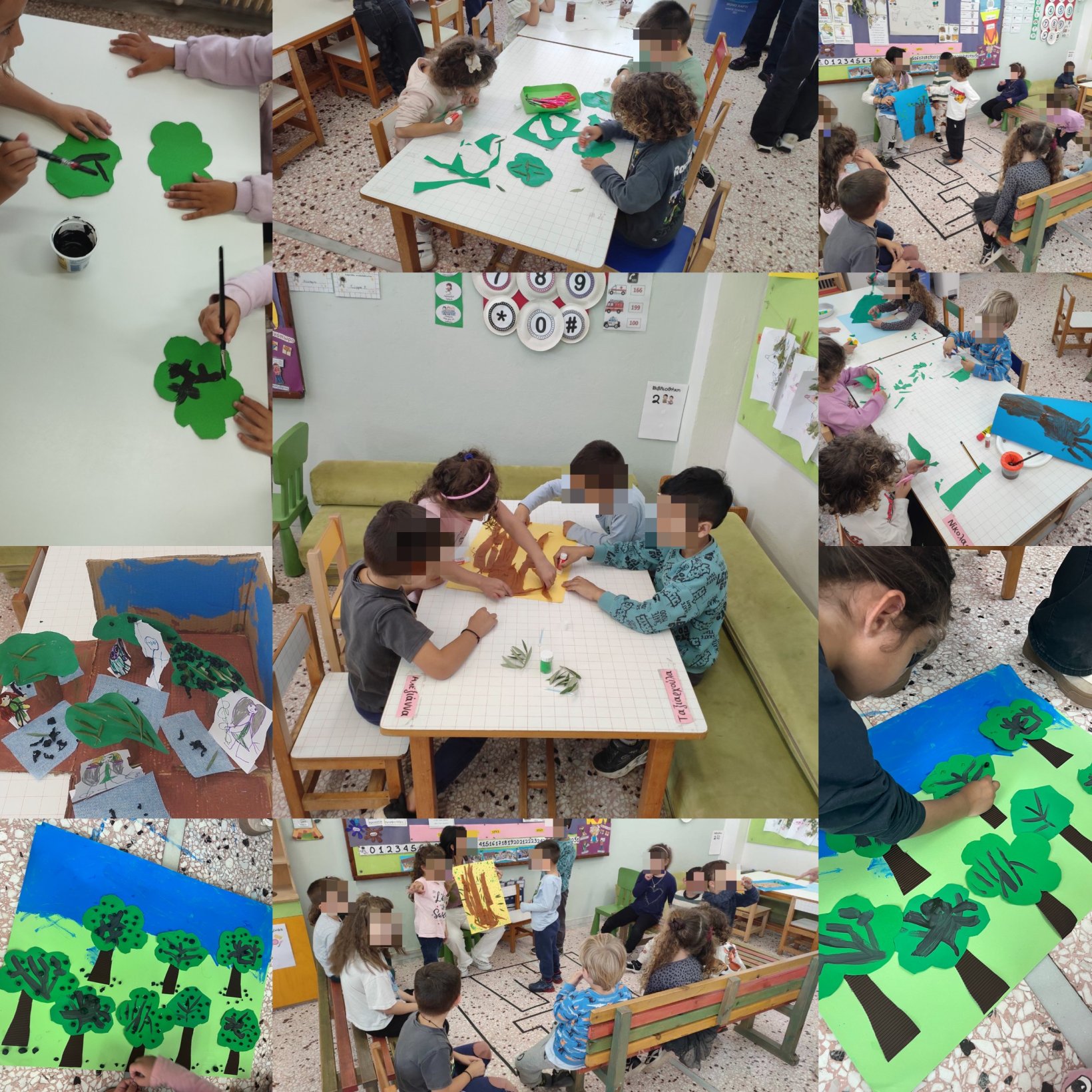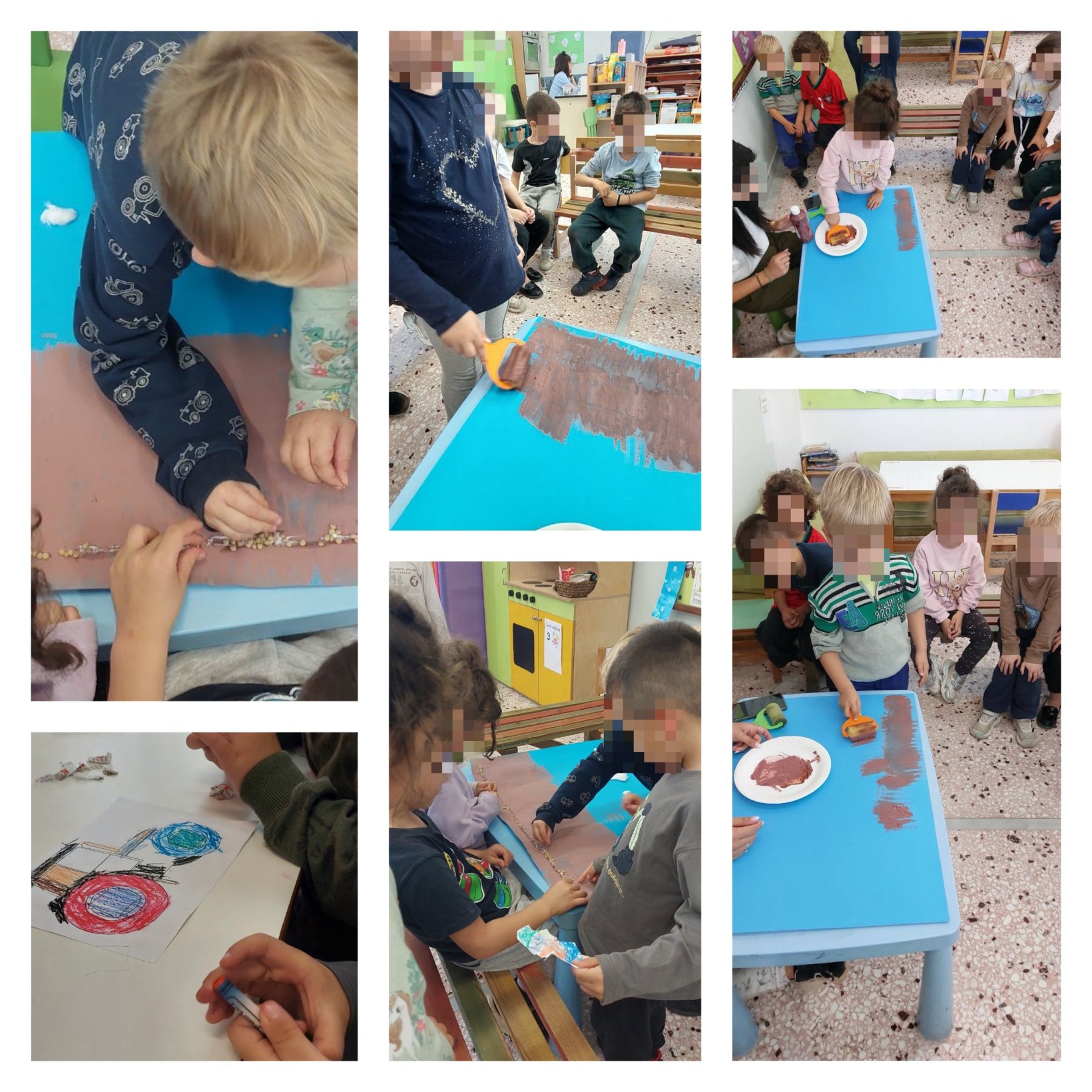 Παράλληλα, μάθαμε πόσο σημαντική είναι η ελιά για την υγεία μας και τη διατροφή μας, και δημιουργήσαμε ζωγραφιές με κλαδιά ελιάς, καθώς και μια υπέροχη ομαδική εργασία με ελαιώνες, χρησιμοποιώντας διάφορα υλικά και τεχνικές.