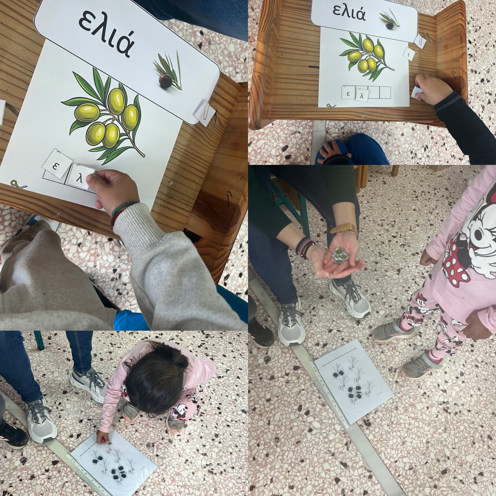Και φυσικά, δεν έλειψαν τα παιχνίδια! Παίξαμε μαθηματικά παιχνίδια με ελιές, κάναμε σειροθετήσεις, ταξινομήσεις και μικρές προσθέσεις, ενώ σε γλωσσικές δραστηριότητες προσπαθήσαμε να βάλουμε γράμματα στη σωστή σειρά με λέξεις σχετικές με την ελιά. Ήταν μια θεματική γεμάτη ανακαλύψεις, γεύσεις και δημιουργία!