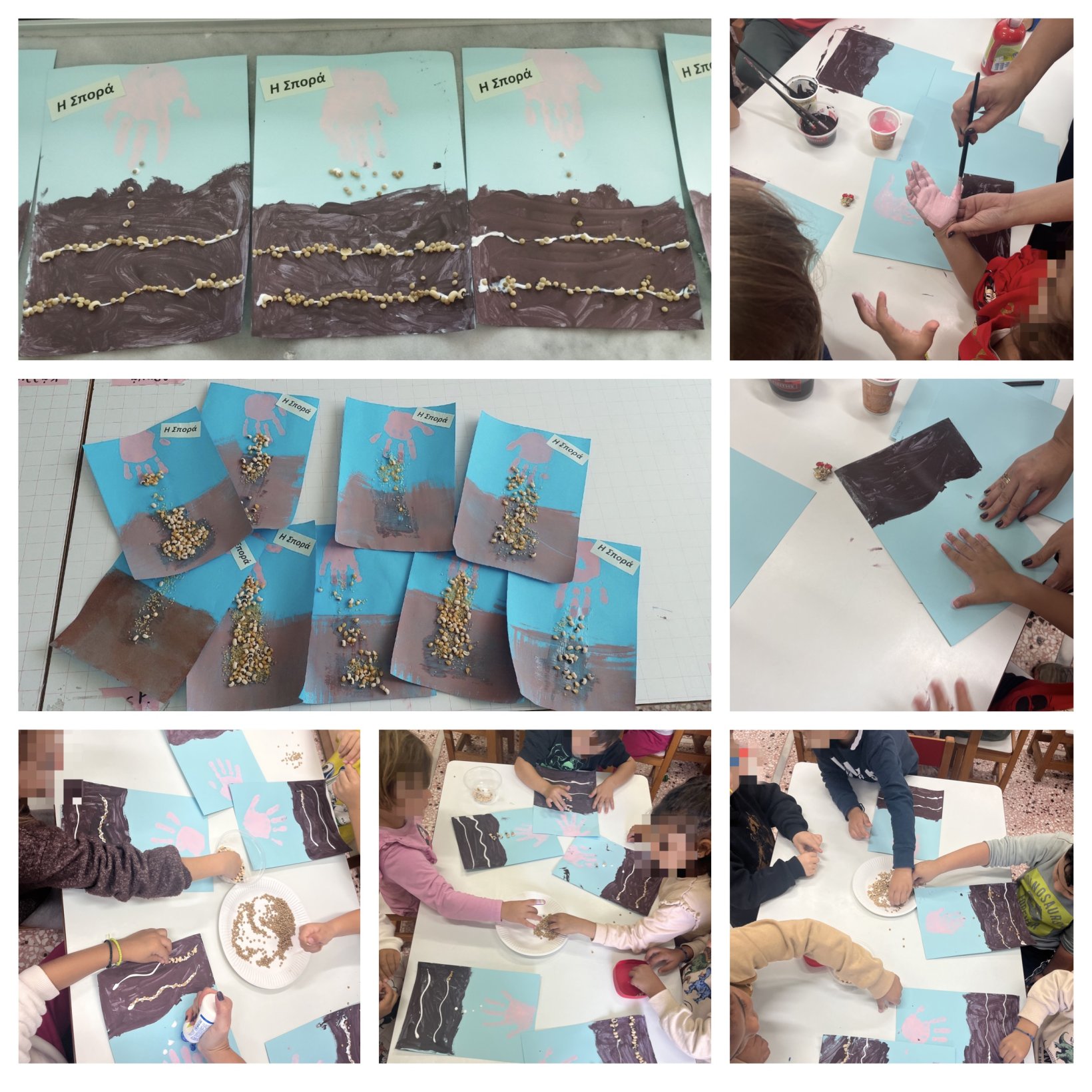 Στη συνέχεια συζητήσαμε αναλυτικά τη διαδικασία παραγωγής του ψωμιού, από τον σπόρο μέχρι το τελικό προϊόν. Τα παιδιά ενθουσιάστηκαν ανακαλύπτοντας πώς από ένα μικρό σποράκι μπορούμε να φτάσουμε στο καθημερινό ψωμί που όλοι γνωρίζουμε.