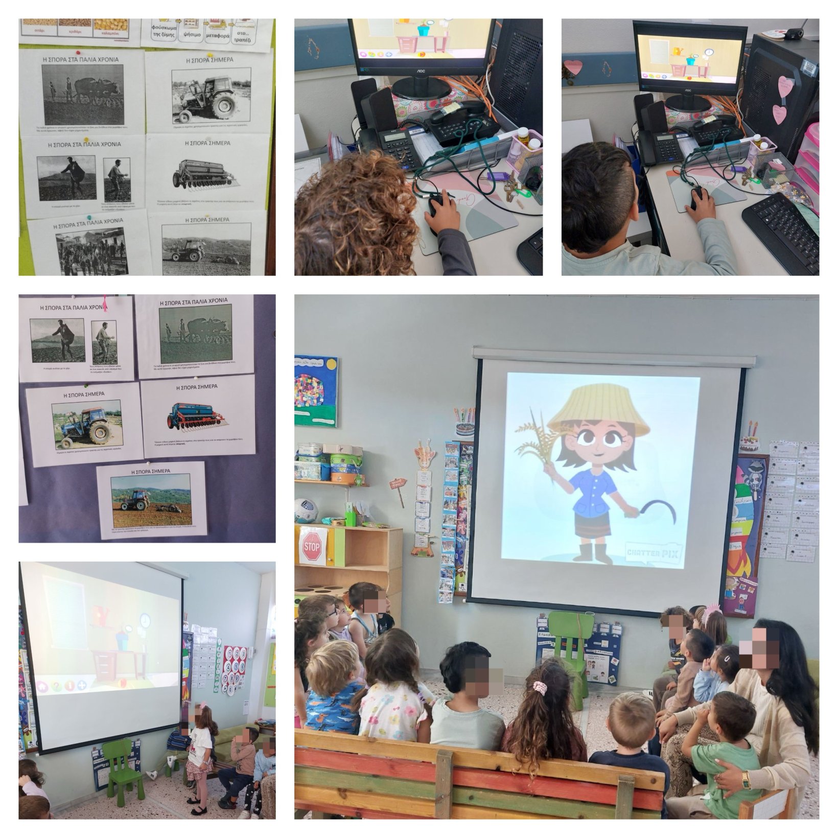 Ξεκινήσαμε εξερευνώντας τι έκαναν οι άνθρωποι παλιά για να καλλιεργήσουν τη γη και τι κάνουμε σήμερα, παρακολουθώντας σχετικά βίντεο που βοήθησαν τα παιδιά να κατανοήσουν καλύτερα τις αλλαγές μέσα στον χρόνο.