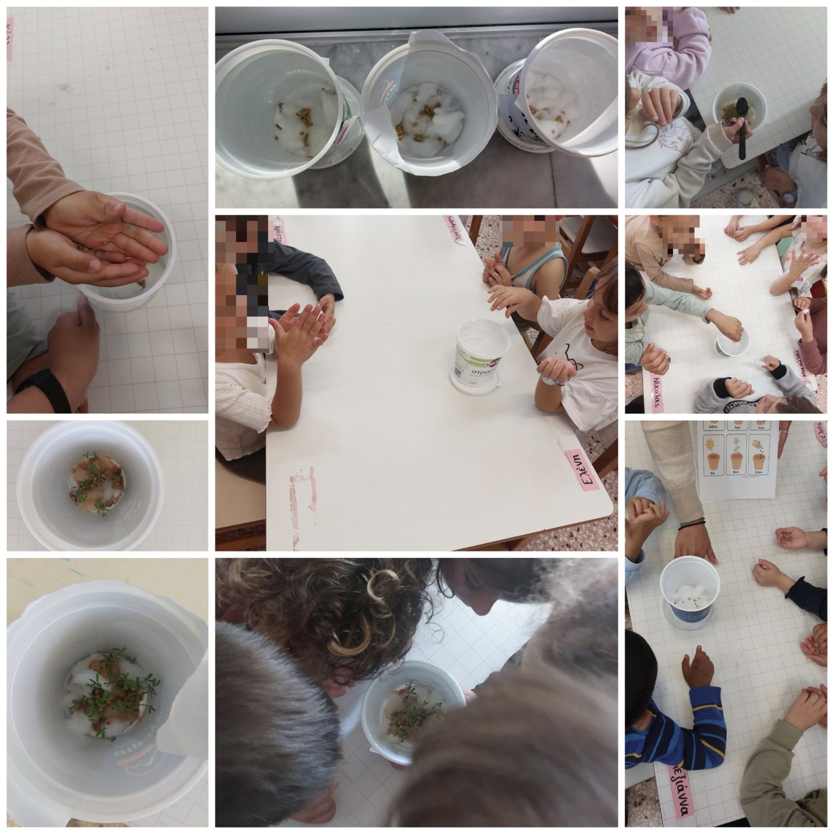 Φυτέψαμε φακές σε βαμβάκι, παρατηρώντας καθημερινά τις αλλαγές και φροντίζοντας τους μικρούς μας σπόρους με ενθουσιασμό.