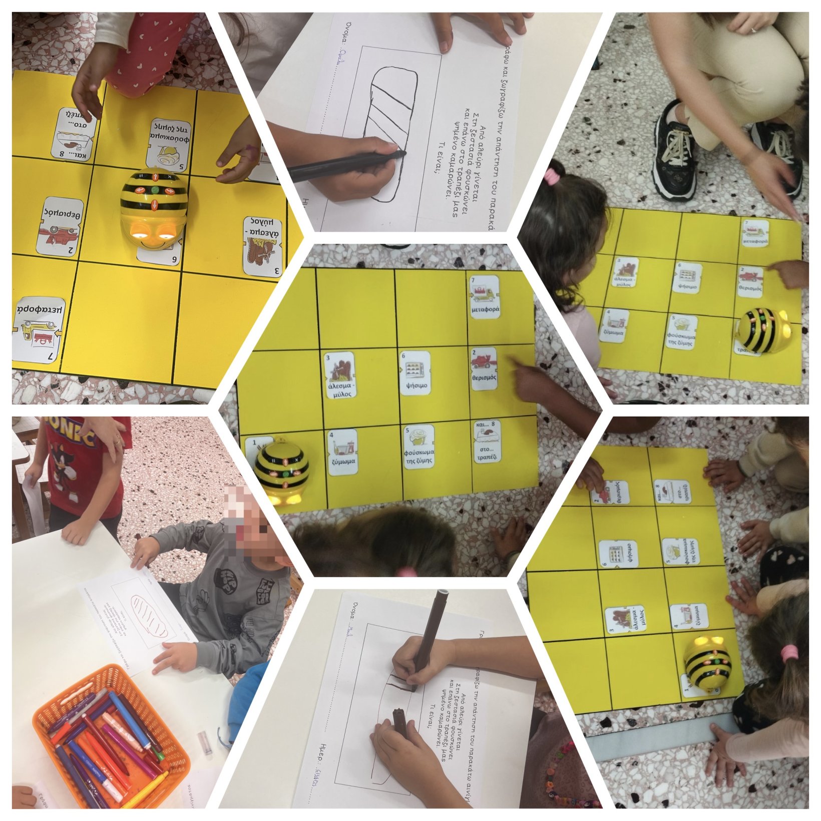Για να γίνει η μάθηση ακόμη πιο βιωματική, παίξαμε με την Bee-Bot, ακολουθώντας διαδρομές σχετικές με τα στάδια της καλλιέργειας και της παραγωγής. Η δραστηριότητα αυτή ενίσχυσε τον προγραμματισμό, τη λογική σκέψη και τη συνεργασία.