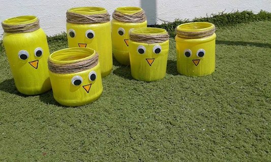 Βάψαμε με ακρυλικό χρώμα γυάλινα βάζα και τα μεταμορφώσαμε σε κοτοπουλάκια γεμάτα σοκολατένιες λιχουδιές!!!