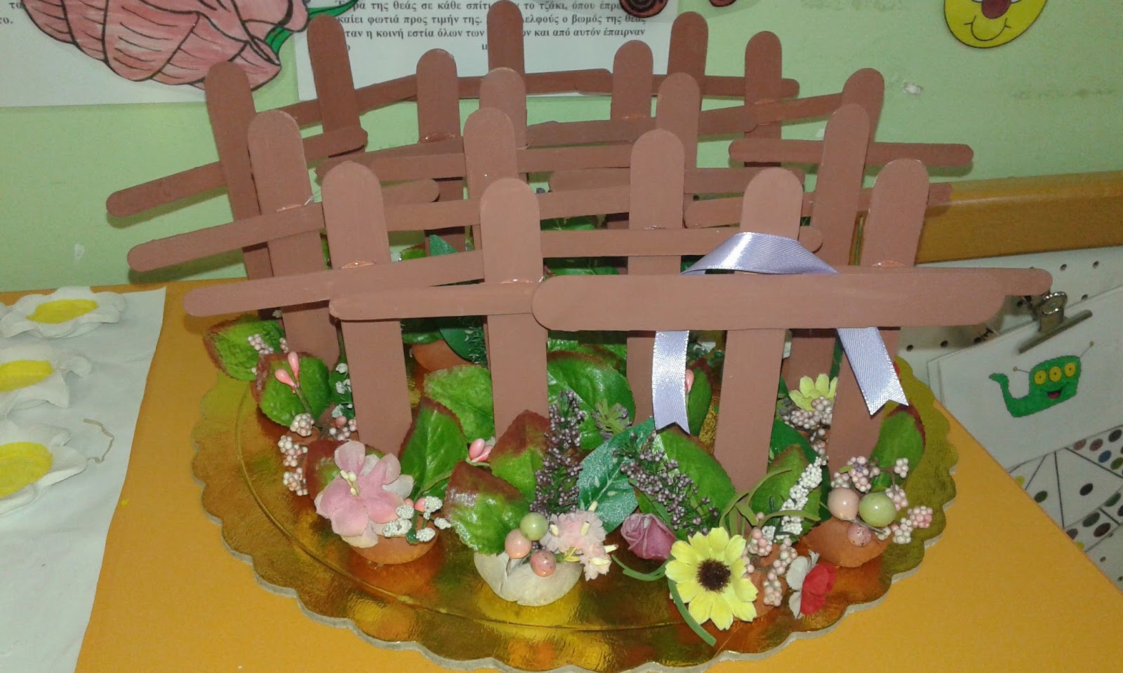 Οι σταυροί μας….τα παιδιά έβαψαν τα γλωσσοπίεστρα, έπλασαν τον πηλό σε μπαλάκια, τοποθέτησαν τον σταυρό στην μέση και στόλισαν με μικρά λουλούδια.