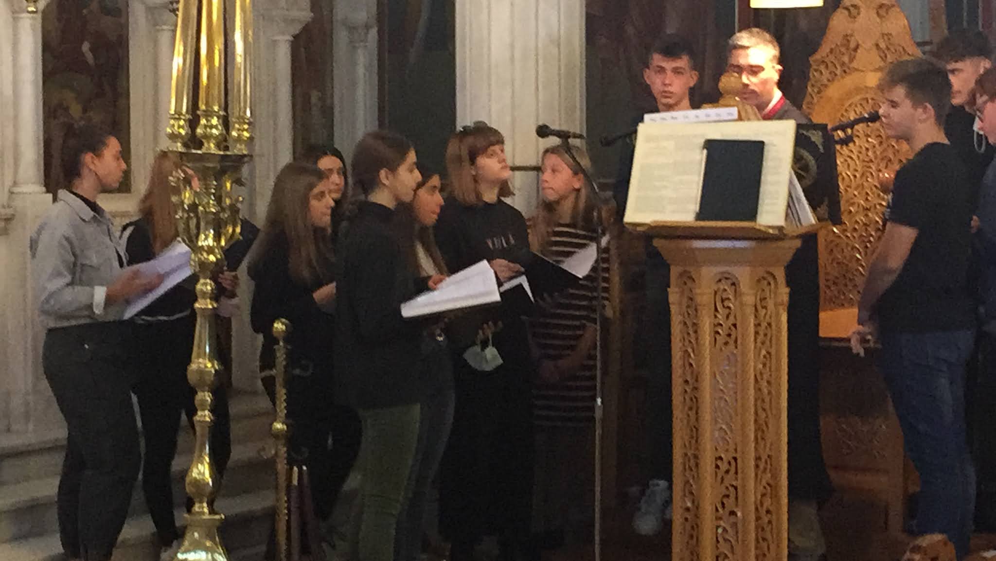 Μαθητές και μαθήτριες της Βυζαντινής χορωδίας του Μουσικού Σχολείου Αργολίδας, έψαλλαν στη Θεία Λειτουργία του Ιερού Ναού της Ευαγγελιστρίας Ναυπλίου την Κυριακή 1η Νοεμβρίου, με υπεύθυνο καθηγητή τον κ. Άγγελο Μπέντη.