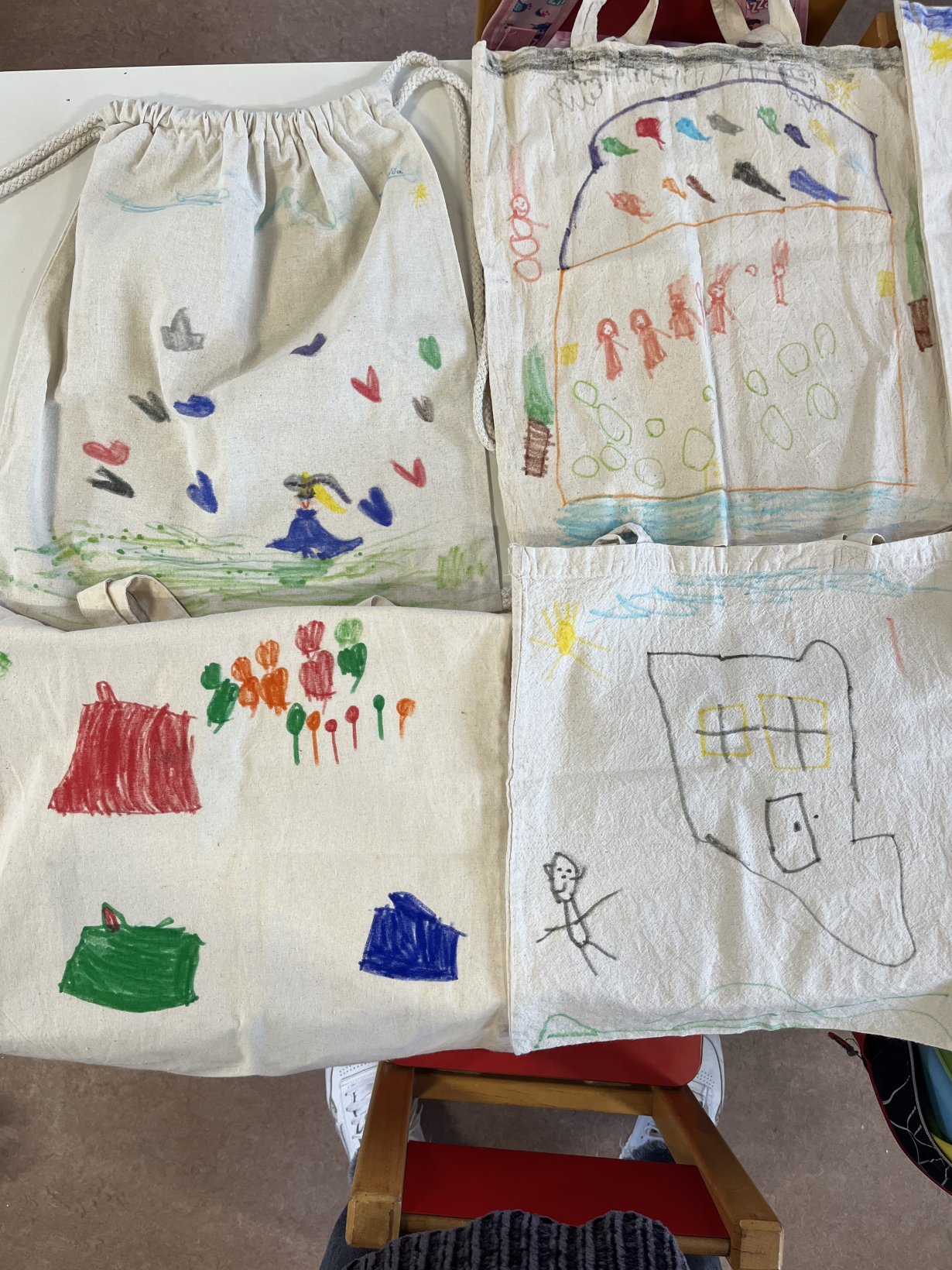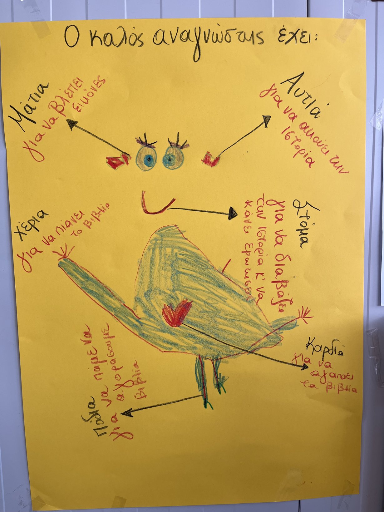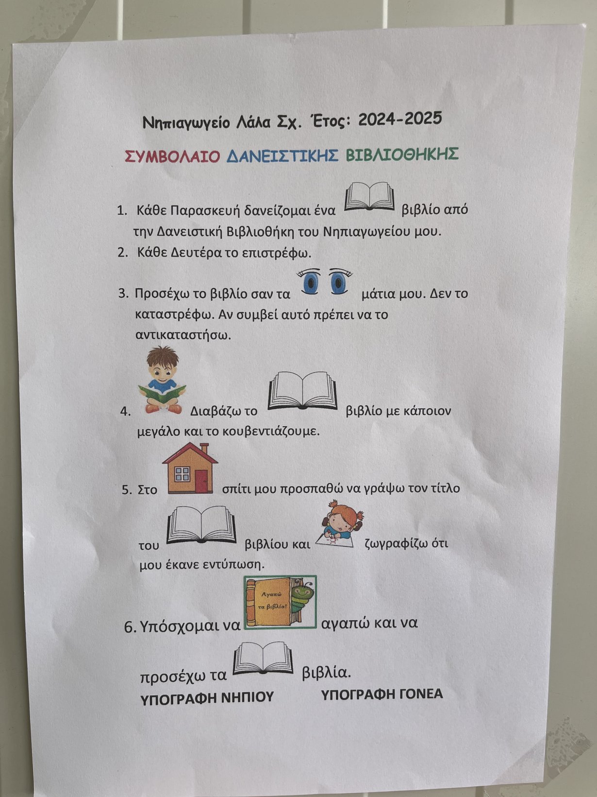 Αρχικά, η έναρξη της δανειστικής μας βιβλιοθήκης μας βοήθησε να αναπτύξουμε την φαντασία μας. Εμπλουτίσαμε την βιβλιοθήκη μας με όσα περισσότερα παραμύθια μπορούσαμε, φτιάξαμε ταυτότητες με σκοπό να δανειστούμε βιβλία κάθε Παρασκευή, μιλήσαμε για τον καλό αναγνώστη και θέσαμε κανόνες σωστής λειτουργίας της δανειστικής μας βιβλιοθήκης. Επιπλέον, στολίσαμε τις τσαντούλες που θα μεταφέραμε τα βιβλία μας.