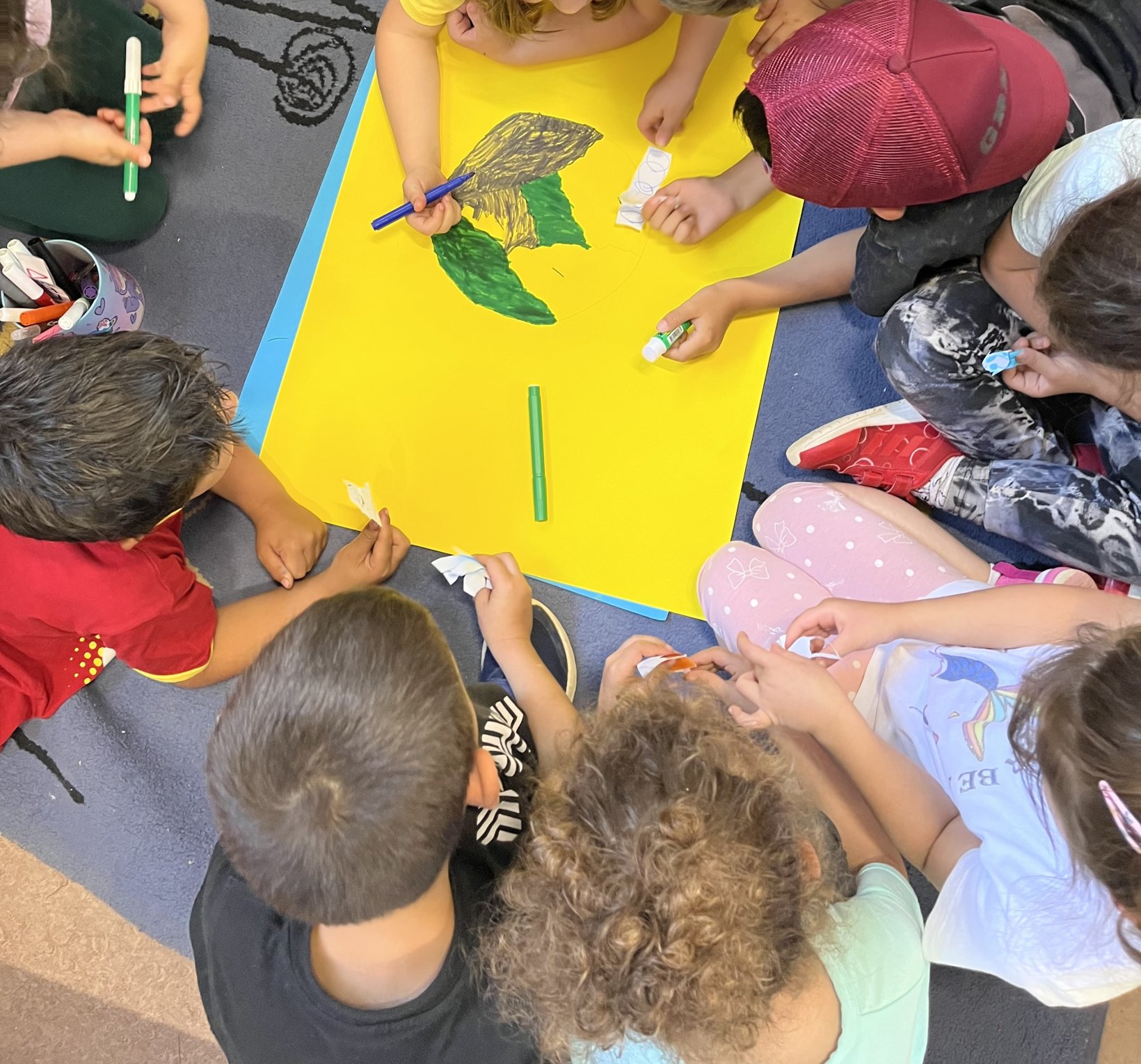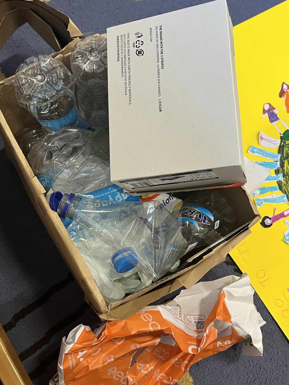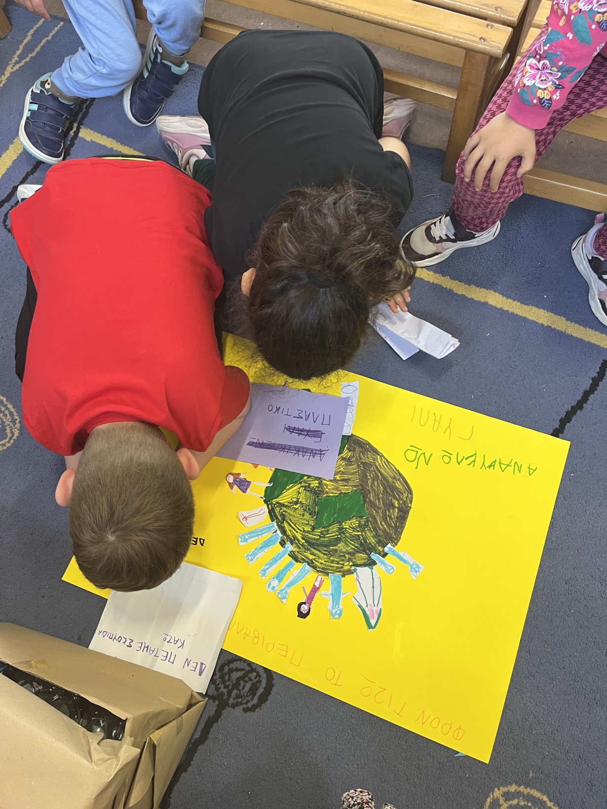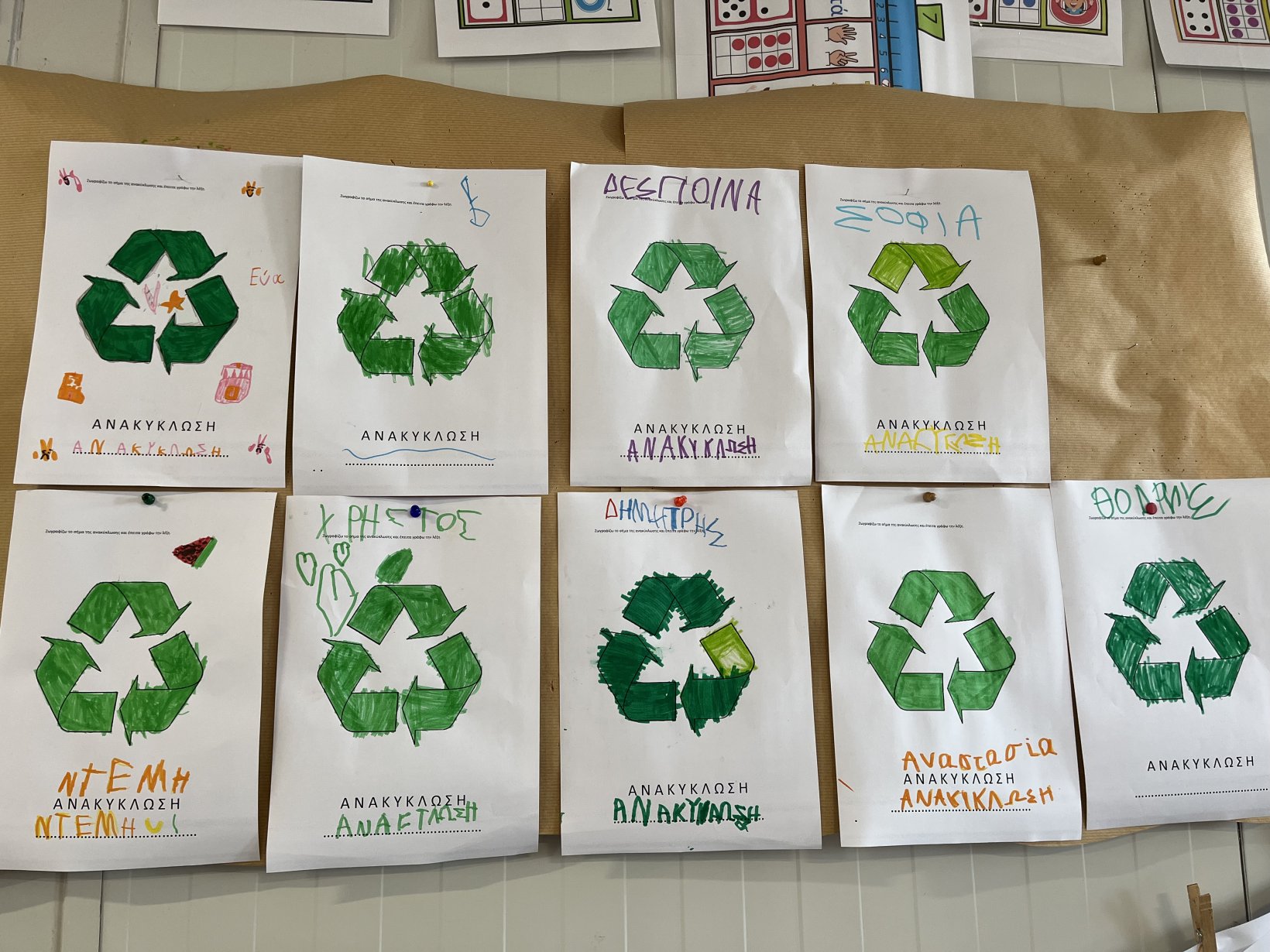Αποφάσισαν να φτιάξουν μια ομαδική αφίσα για να ευαισθητοποιήσουν την τοπική κοινότητα. Εκτός από την αφίσα τοποθετήσαν και σακούλες διαφορετικές για κάθε ανακυκλώσιμο υλικό με σκοπό την συλλογή ανακυκλώσιμων σκουπιδιών.