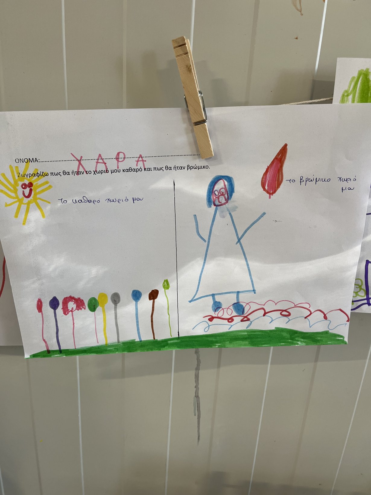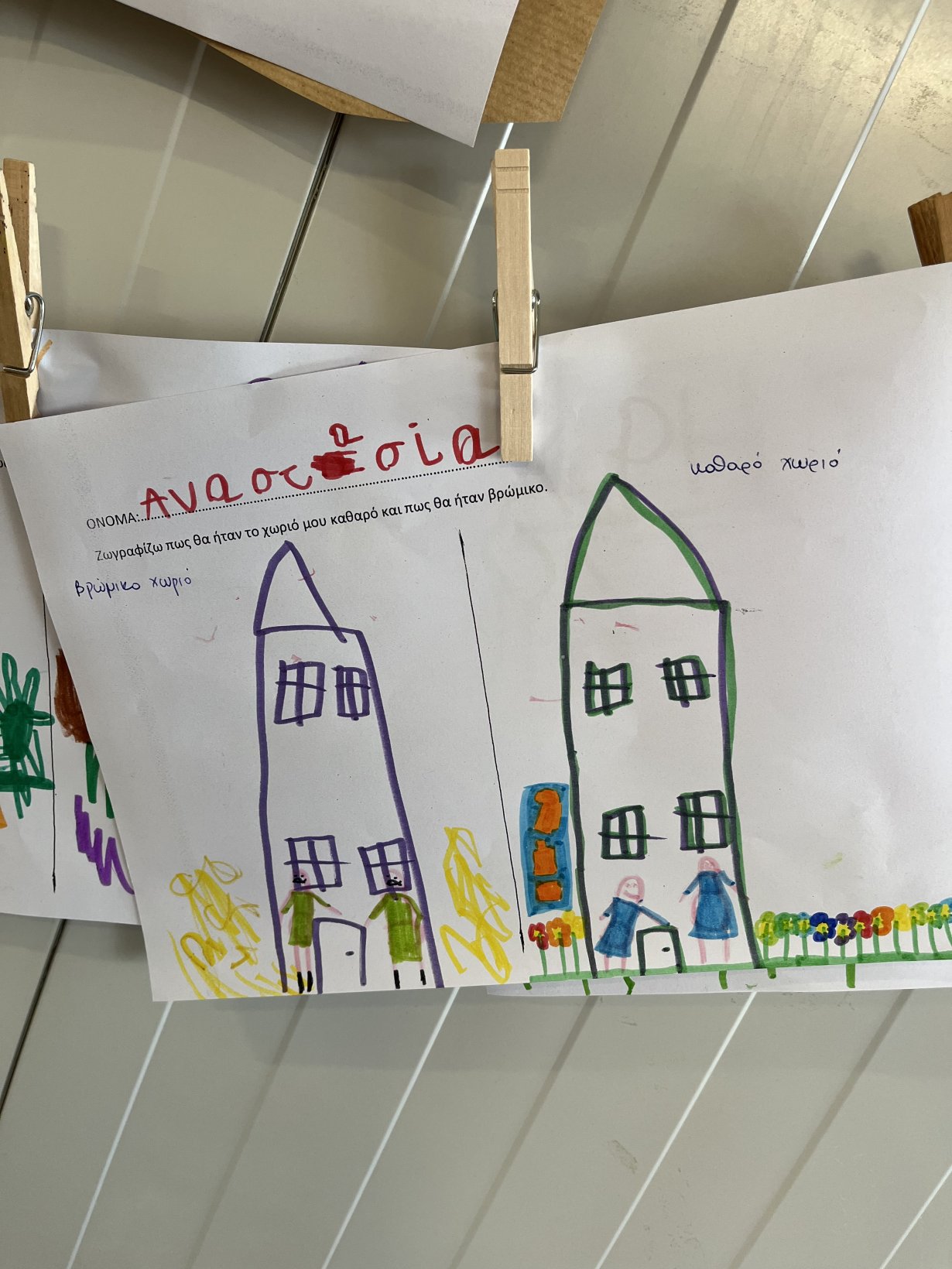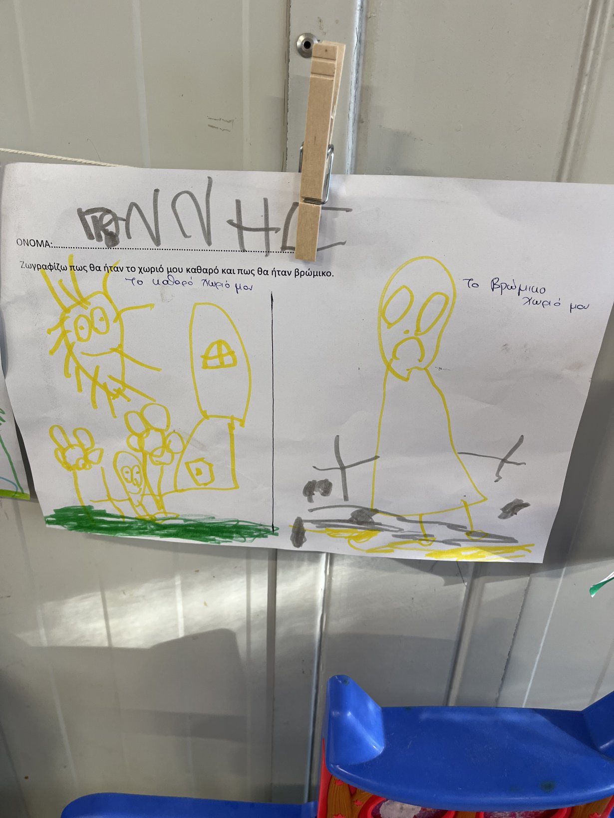 Τα παιδιά φαντάστηκαν πώς θα ήταν το χωριό τους βρώμικο και πως καθαρό και το αποτύπωσαν στο χαρτί.