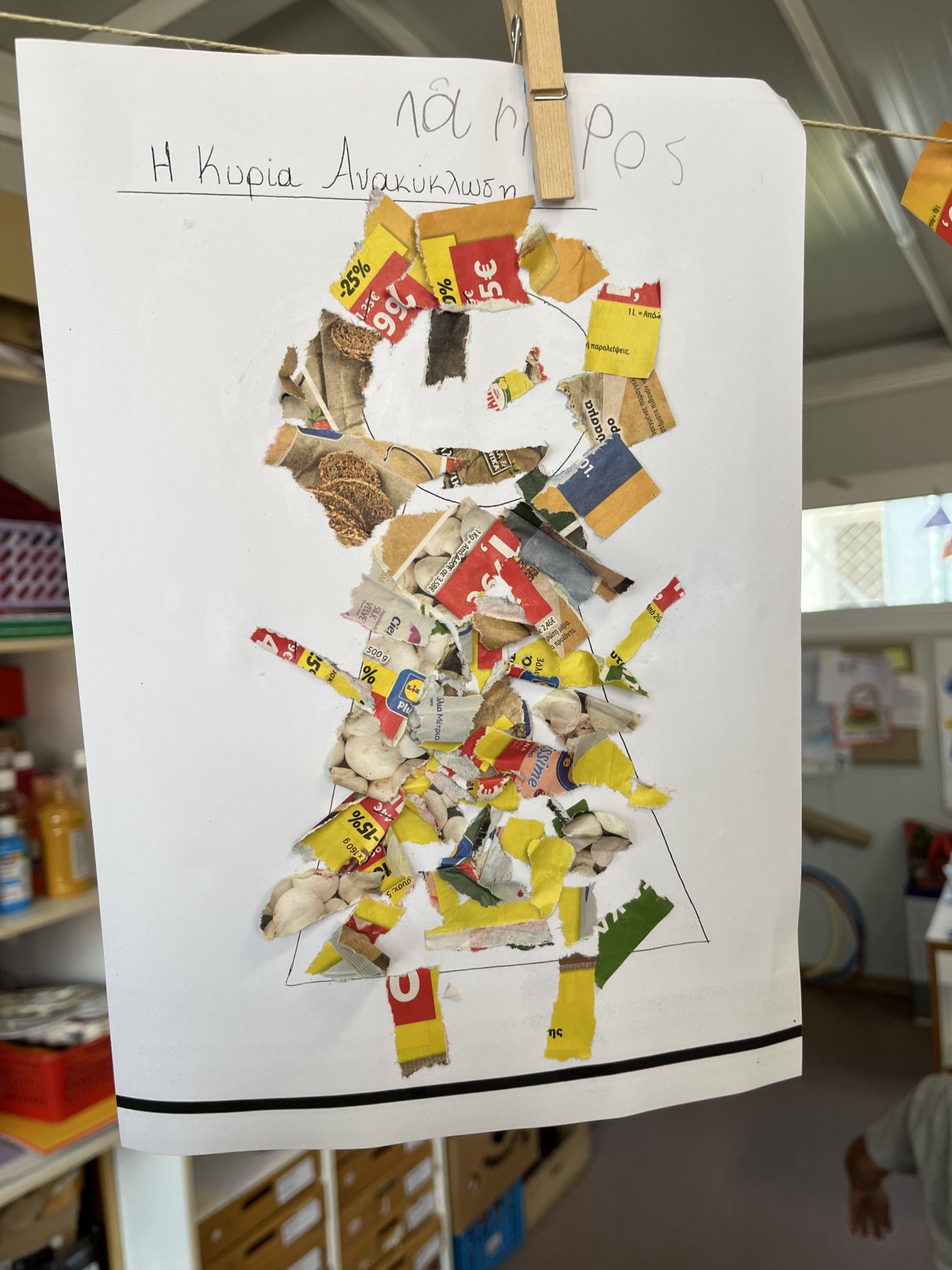 Η συζήτηση κατέληξε στο θέμα της Ανακύκλωσης. Τα παιδιά έμαθαν ποια υλικά ανακυκλώνονται και μετά το δεκατιανό τους αποφάσισαν να ομαδοποιήσουν τα σκουπίδια τους ανάλογα με το υλικό. Γνώρισαν το σήμα της Ανακύκλωσης…