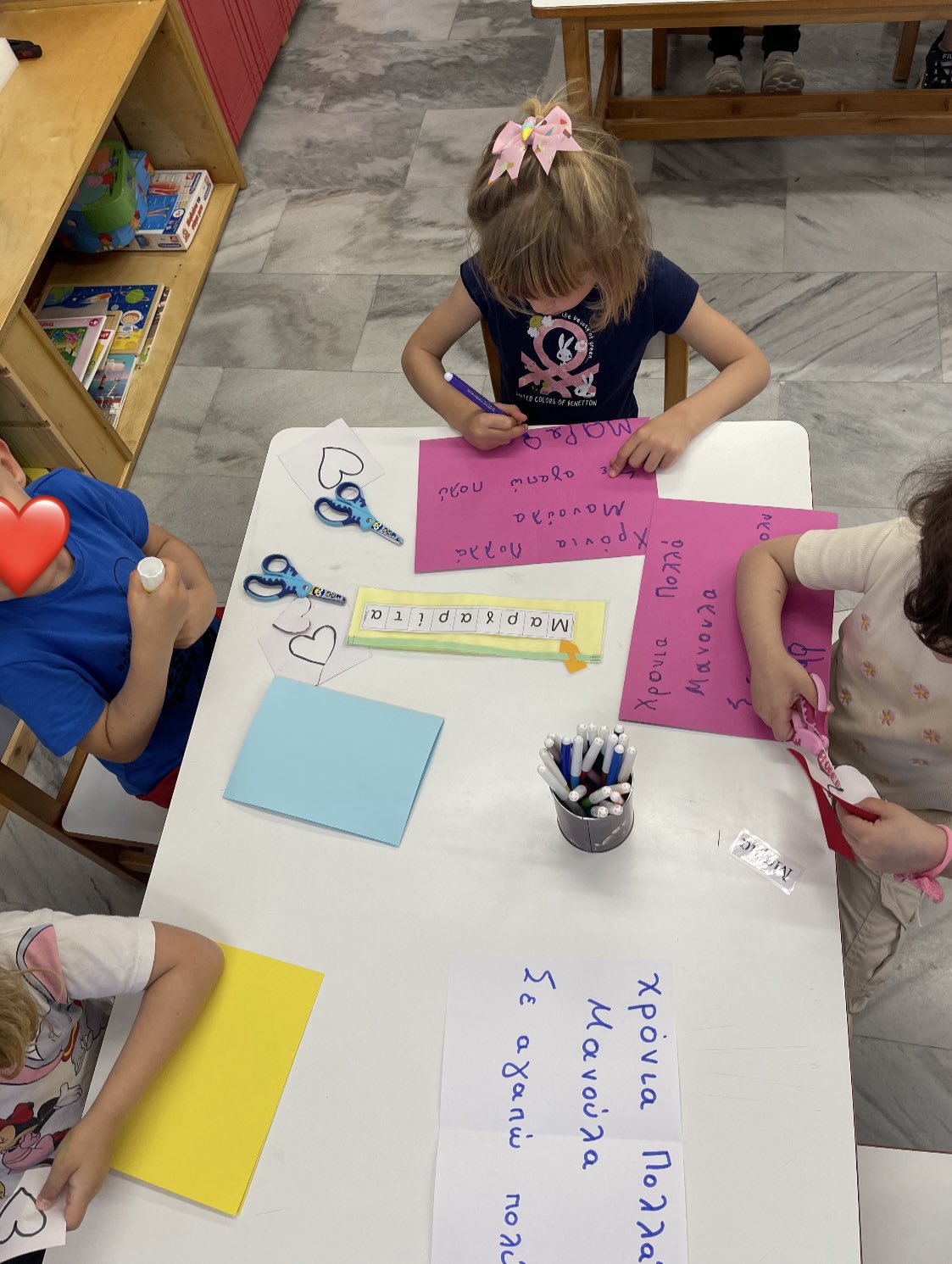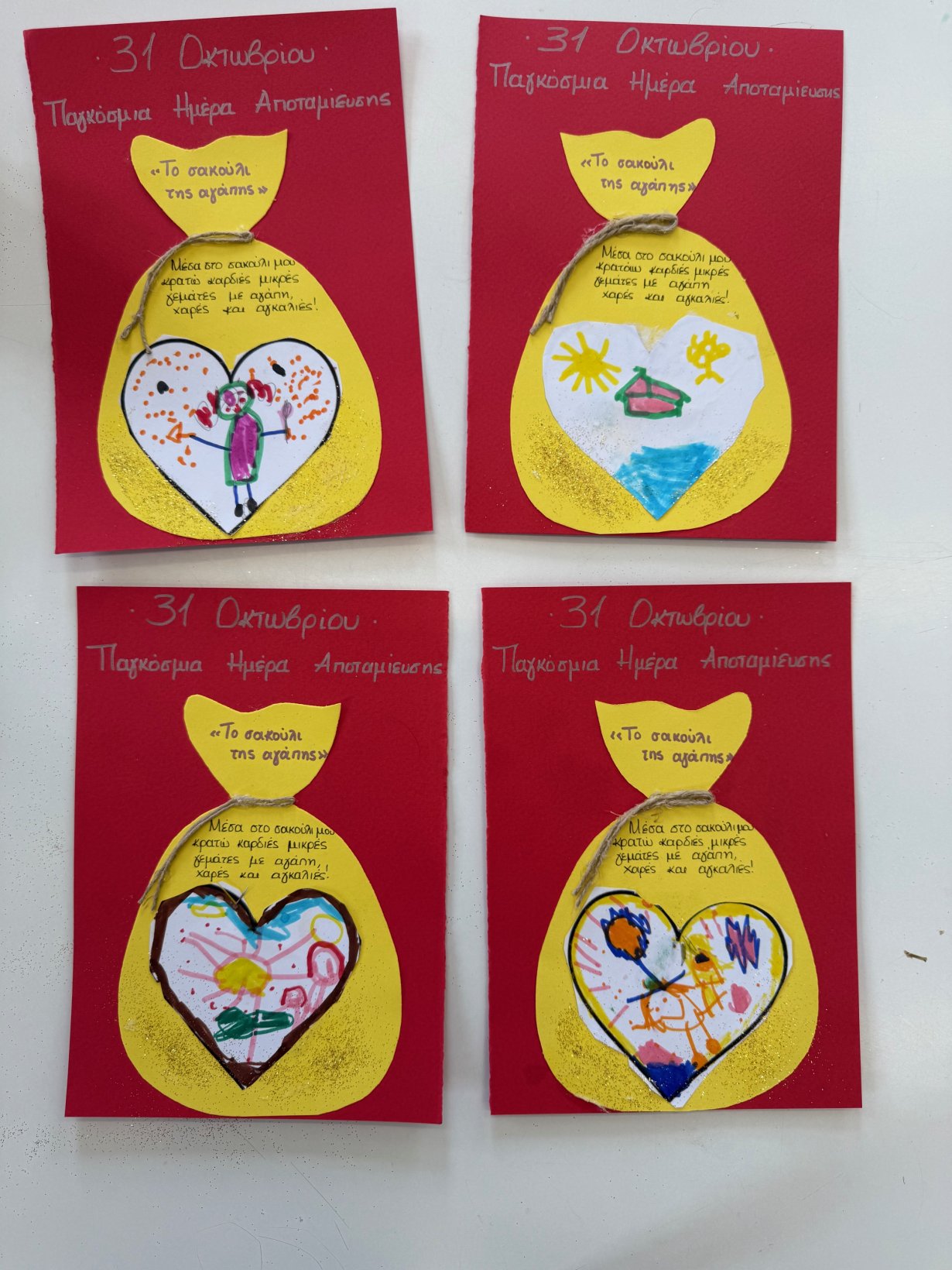 Στη συνέχεια, κάθε παιδί έφτιαξε το δικό του “σακούλι της αγάπης”, ζωγραφίζοντας πάνω σε κάθε καρδούλα τι θέλει να αποταμιεύει μέσα στην καρδία του: αγάπη, χαμόγελα, όνειρα, φιλία.