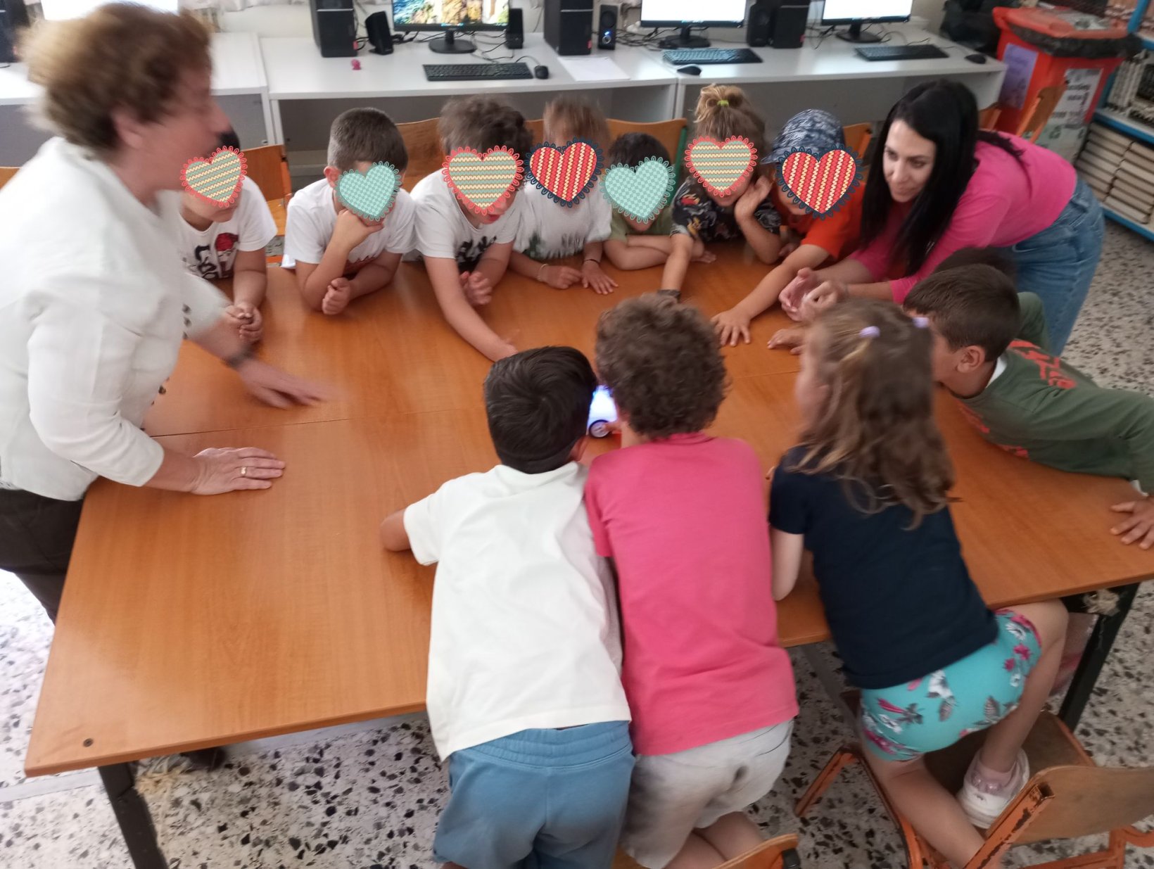 Σε συνεργασία με τη διευθύντρια και τις / τους εκπαιδευτικούς του δημοτικού σχολείου, πραγματοποιήθηκαν συνδιδασκαλίες με τις τάξεις Α΄, Γ΄, Δ΄, & ΣΤ΄ δημοτικού, στα μαθήματα της γλώσσας, της μουσικής, της γυμναστικής και της πληροφορικής. Τα παιδιά ξεναγήθηκαν επίσης σε όλους τους χώρους του δημοτικού σχολείου (βιβλιοθήκη, αίθουσα πολλαπλών χρήσεων, πληροφορικής, μουσικής, αθλητικοί χώροι, προαύλιο). Έπαιξαν, έμαθαν, εξέφρασαν τις σκέψεις και τα συναισθηματά τους.