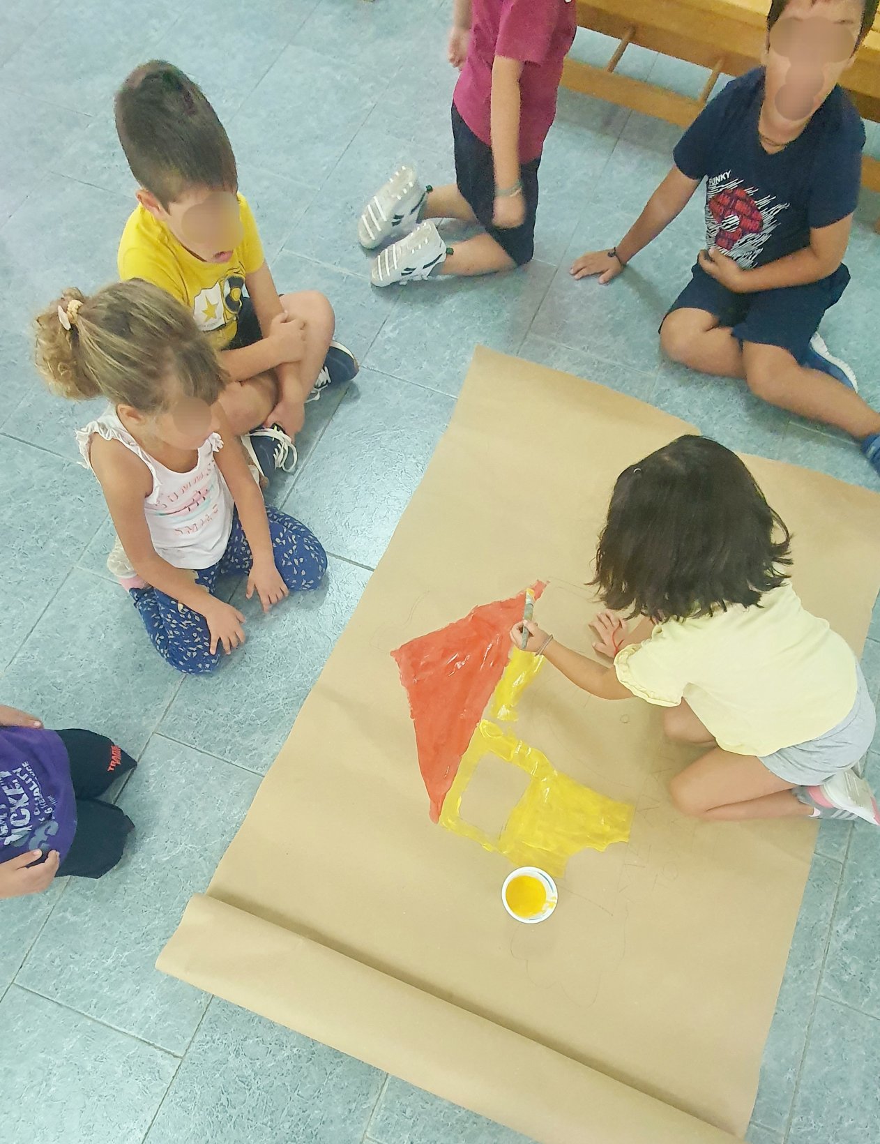 Αφού ενημέρωσα τα παιδιά για την μεγάλη καταστροφή της περιοχής και ειδικά του σχολείου συζητήσαμε για το τι θα μπορούσαμε να στείλουμε σαν δώρο στα παιδιά εκεί. Οι περισσότεροι σκέφτηκαν μια ζωγραφιά, όποτε καταλήξαμε να φτιάξουμε μαζί μια τεράστια ζωγραφιά και να τη στείλουμε με αγάπη!!