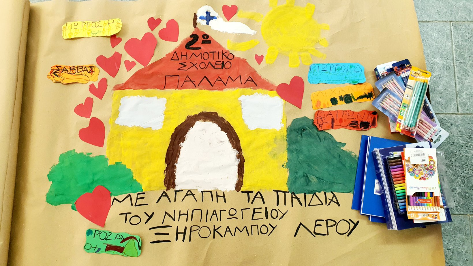 Το Νηπιαγωγείο Ξηροκάμπου ανταποκρίθηκε με πολλή χαρά στο κάλεσμα του Φεστιβάλ των Τριών Φεγγαριών του Δήμου Λέρου ώστε να συγκεντρωθεί και αποσταλεί γραφική ύλη στο Δημοτικό Σχολείο Παλαμά Καρδίτσας το οποίο επλήγη από τις πρόσφατες καταστροφικές πλημμύρες.