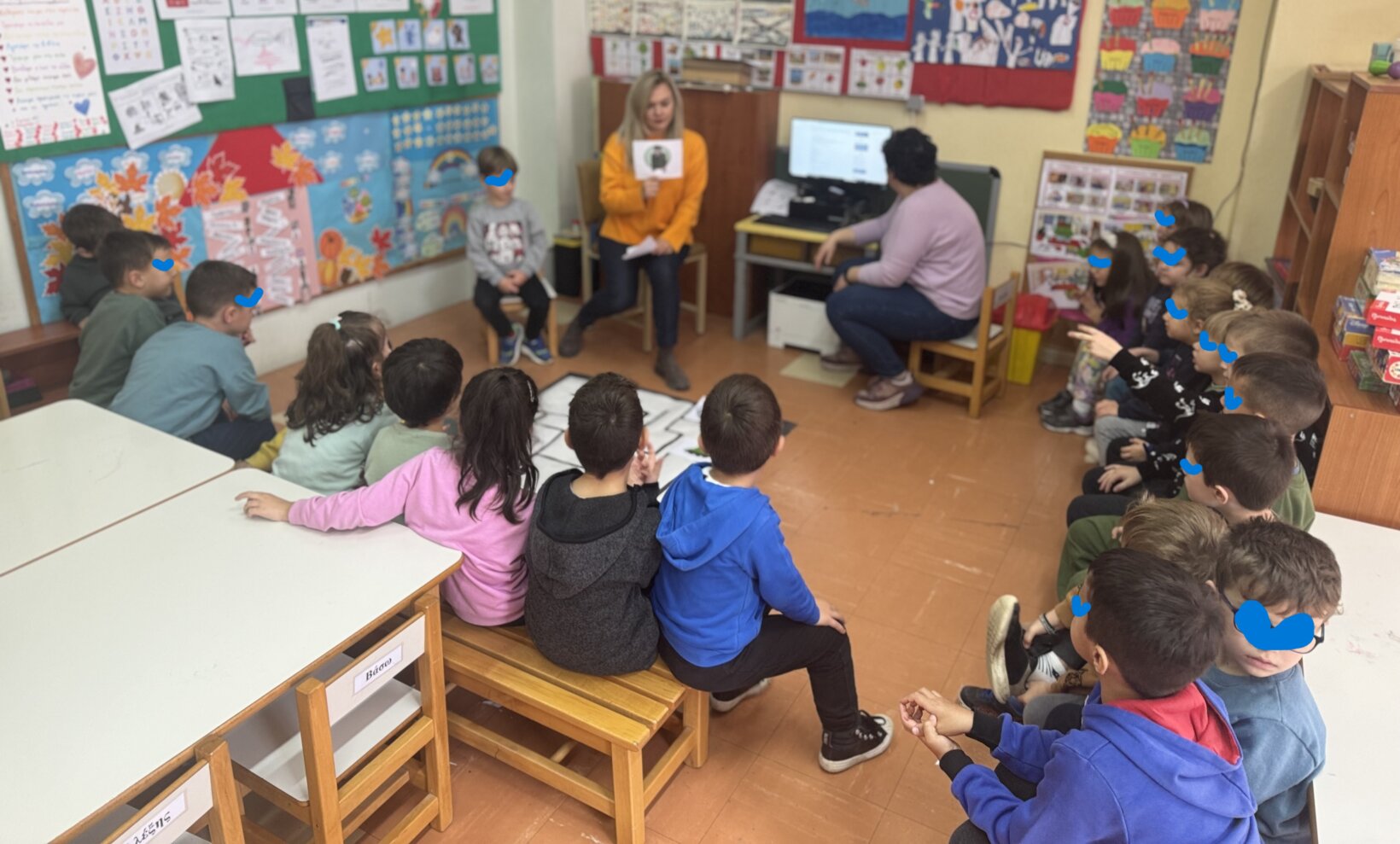 και τέλος τραγουδήσαμε όλοι μαζί: “τα παιδιά ζωγραφίζουν στον τοίχο”,