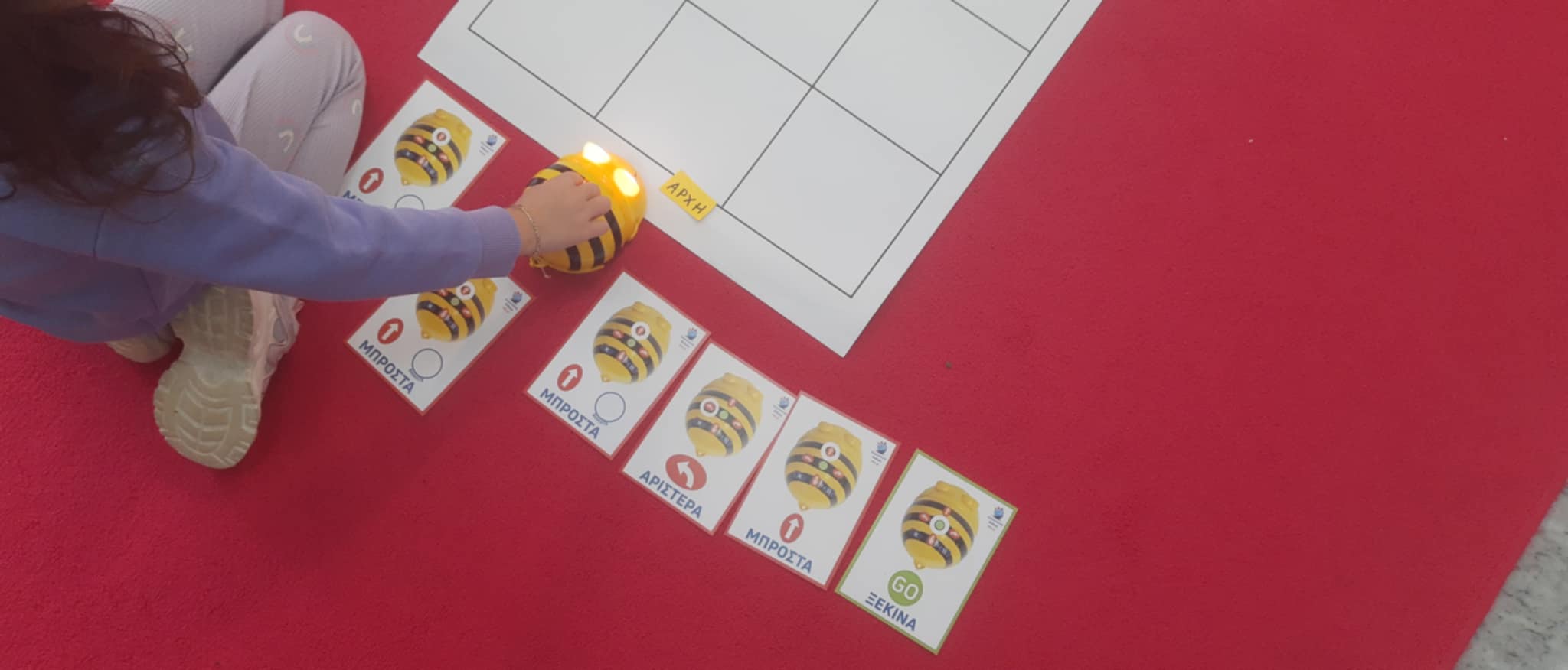 - Παιχνίδι προγραμματισμού: Με αφορμή τη συμμετοχή μας στο Etwinning πρόγραμμα “We are the Heroes”, τα παιδιά ερμήνευσαν αινίγματα που αφορούν τους 17 Στόχους Βιώσιμης Ανάπτυξης και κατεύθυναν το BeeBot στην εικόνα που συνδέονταν με τον αντίστοιχο στόχο κάθε φορά. Στόχος της δραστηριότητας η ανάπτυξη αλγορίθμων και η ερμηνεία συμβόλων προκειμένου τα παιδιά να ανακαλύψουν σημαντικές ιδέες για το πώς μπορούμε να προστατεύσουμε τον πλανήτη και τους ανθρώπους γύρω μας.
