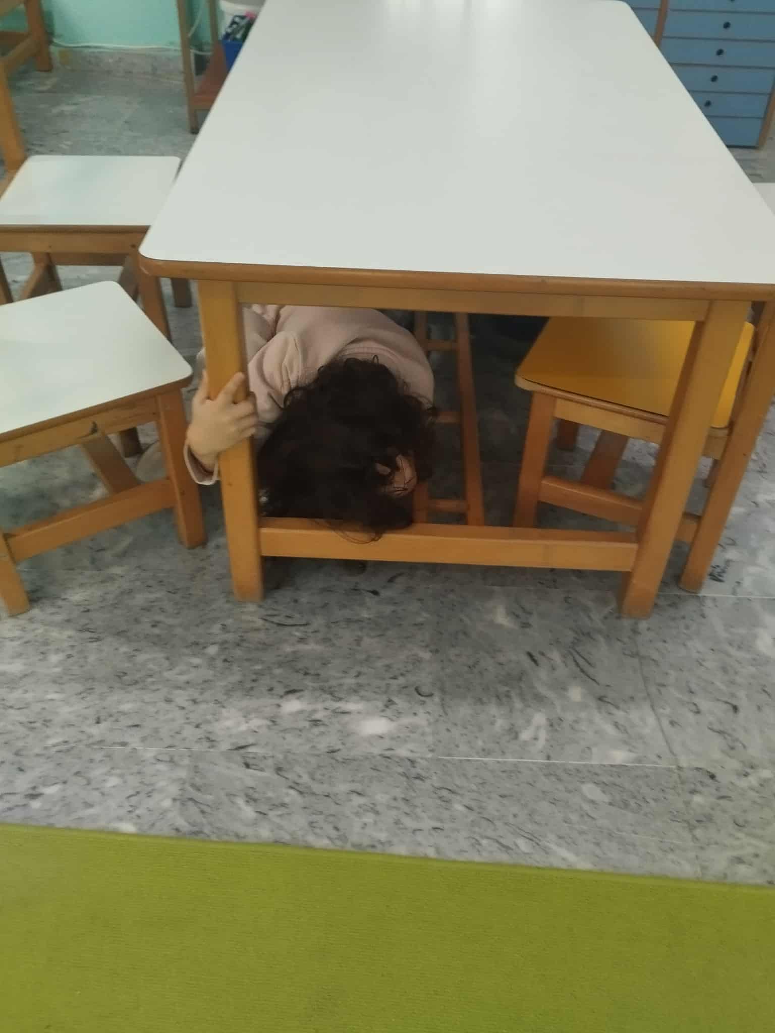 Στη συνέχεια έγινε η άσκηση του σεισμού , τόσο στους εσωτερικούς όσο και εξωτερικούς χώρους του νηπιαγωγείου.